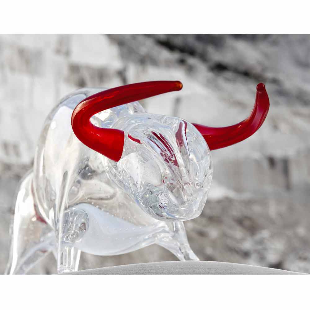 Stierförmiges Ornament aus rotem und transparentem Glas Made in Italy - Torero