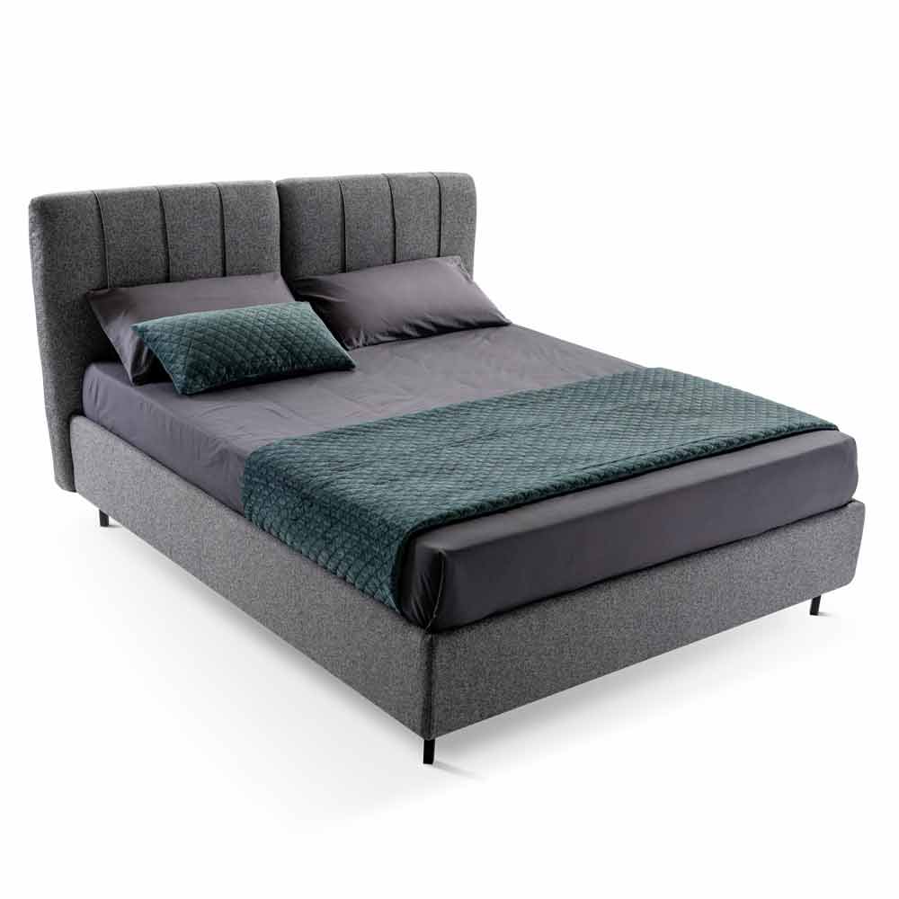 Luxuriöses, modernes Doppelbett mit Stoff-Aufbewahrungsbox und Metallfüßen, handgefertigt in Italien.