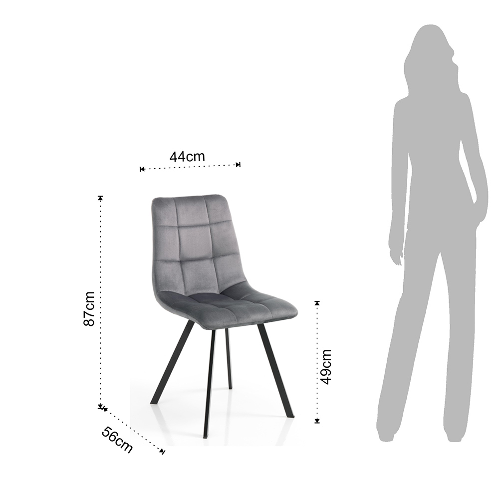 Küchenstuhl mit Beinen aus mattschwarz lackiertem Metall und Sitzpolsterung mit weichem Mikrofaserstoff mit Samteffekt . Ein raffiniertes und zeitgenössisches Design zeichnet dieses Möbelstück mit einer raffinierten Seele aus, ideal, um den Stil Ihres Wohnbereichs auf exklusive Weise zu vervollständigen und ihn mit einem Hauch von Persönlichkeit und Eleganz zu bereichern.