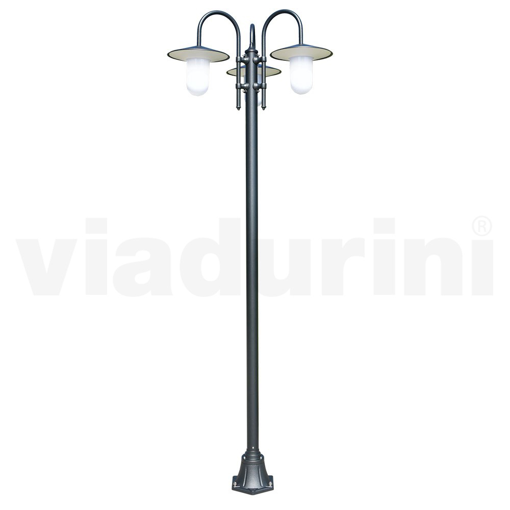 Vintage-Straßenlaterne mit 3 Lichtern aus Aluminium und Polycarbonat. Hergestellt in Italien.