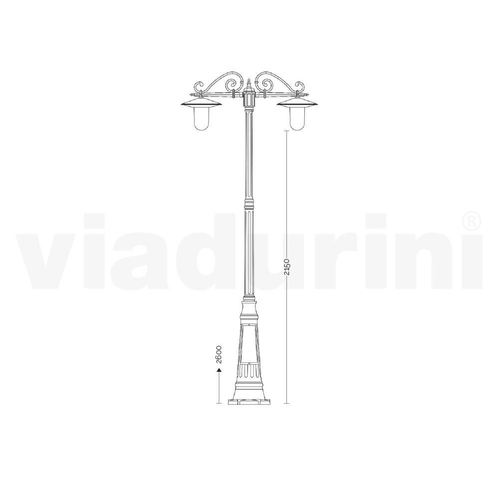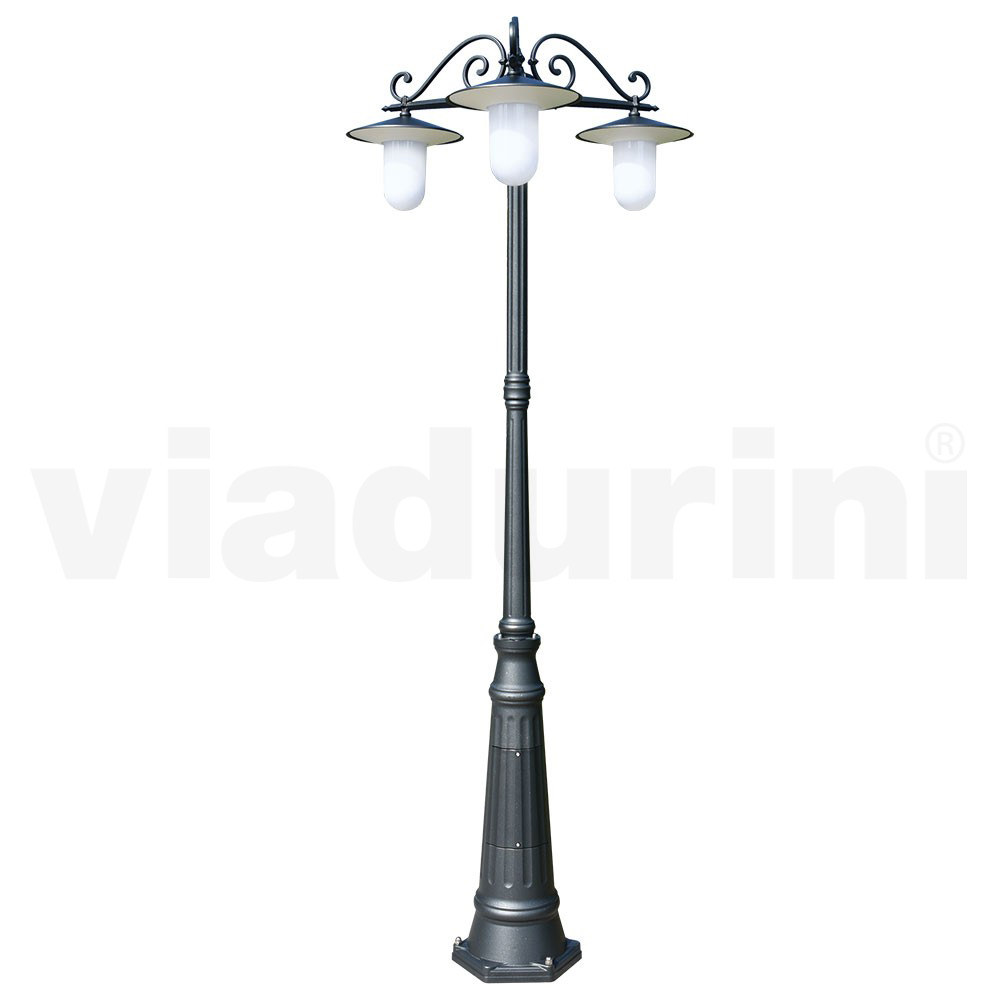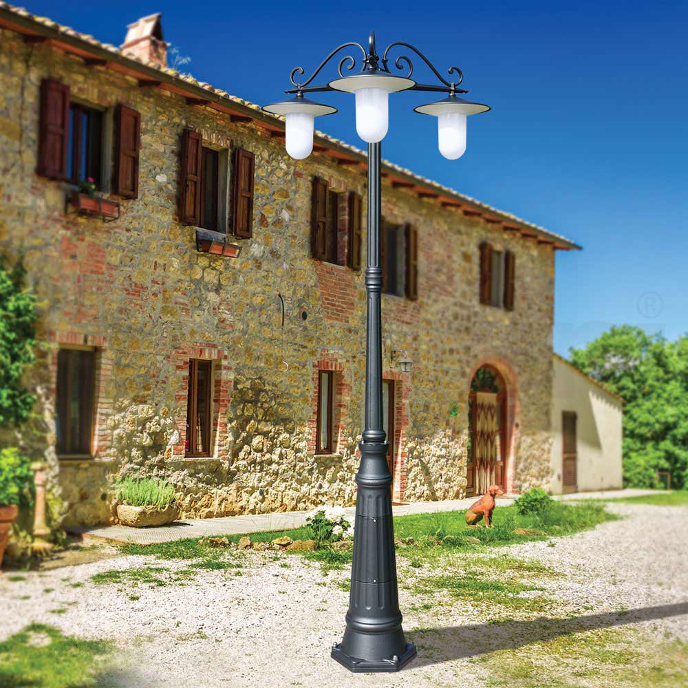 Straßenlampe im Vintage-Stil mit 3 Lichtern aus grauem Aluminium, hergestellt in Italien – Belen
