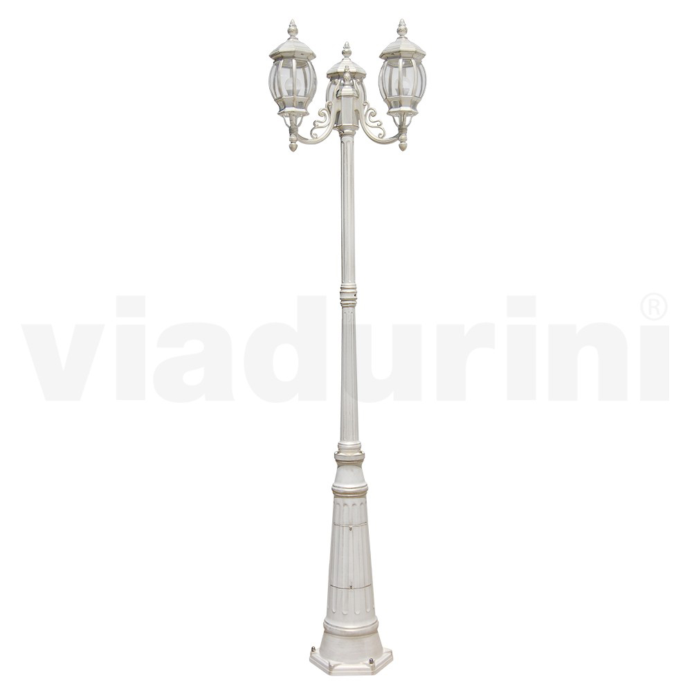 Straßenlampe im Vintage-Stil mit 3 Lichtern aus weißem Aluminium, hergestellt in Italien – Dodo