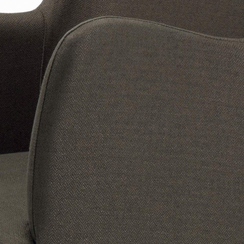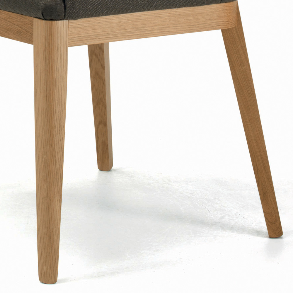 Wohnzimmerstuhl mit gepolsterter und gepolsterter Sitzfläche und Rückenlehne sowie Beinen aus Eichenholz. Wesentlichkeit und Minimalismus sind die besonderen Merkmale dieses Einrichtungsaccessoires im zeitgenössischen Stil , das für diejenigen gedacht ist, die schlichte Einrichtung lieben, aber gleichzeitig eine starke visuelle Wirkung haben möchten . Die ästhetische Leichtigkeit seiner Formen ist seine größte Stärke, die es ihm ermöglicht, sich in jeden Kontext einzufügen und stets einzigartig und originell zu wirken.