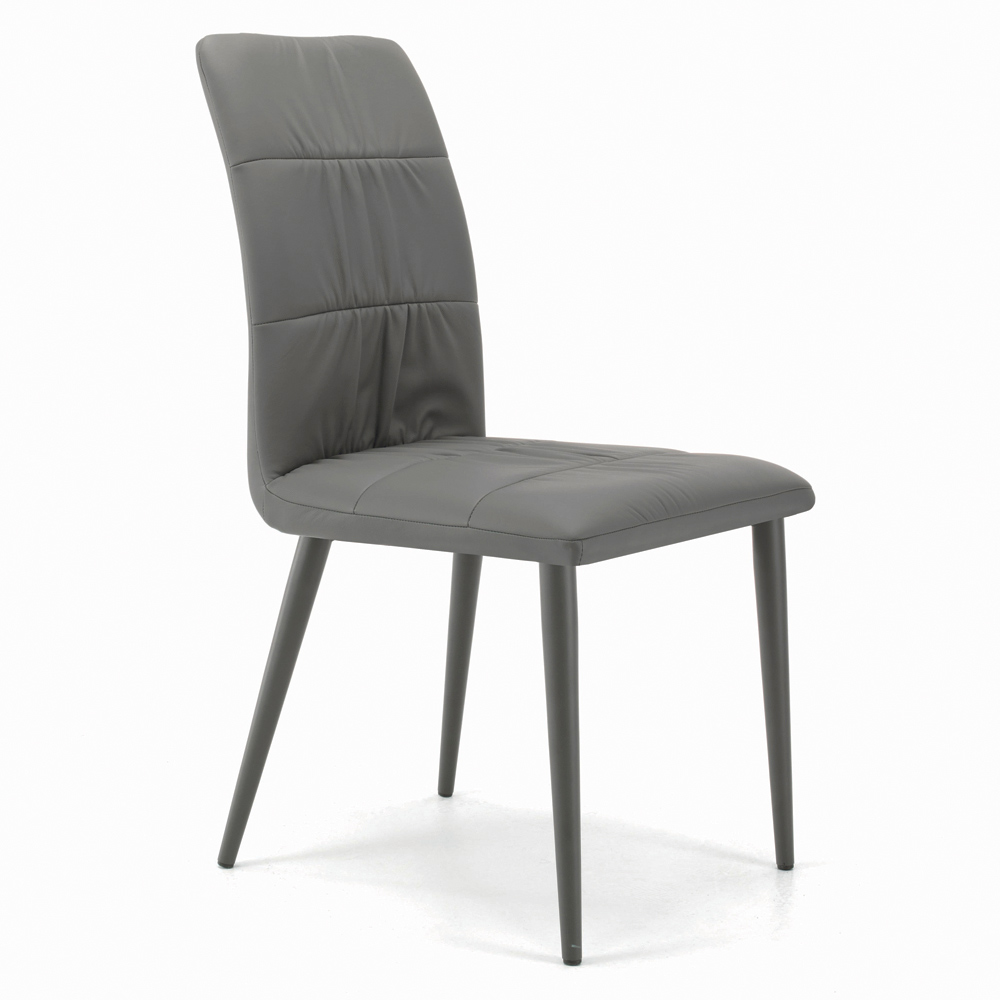 Wohnzimmerstuhl mit Sitz und Rückenlehne aus Stahl, komplett mit Kunstleder bezogen und lackierten Beinen. Dieses Element ist die perfekte Idee für alle, die ihrem Raum ein besonderes und modernes Aussehen verleihen möchten, ohne auf Funktionalität und weiche, bequeme Sitze zu verzichten. Die verwendeten Materialien garantieren Qualität und Langlebigkeit, sodass der Stuhl für jede Situation und jeden Anlass geeignet ist.