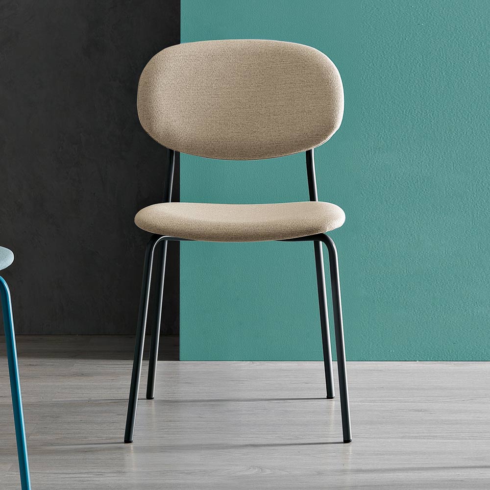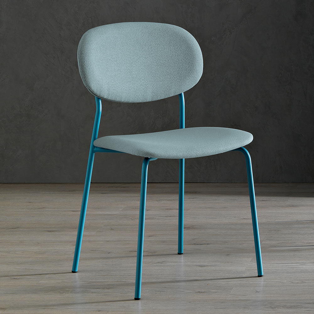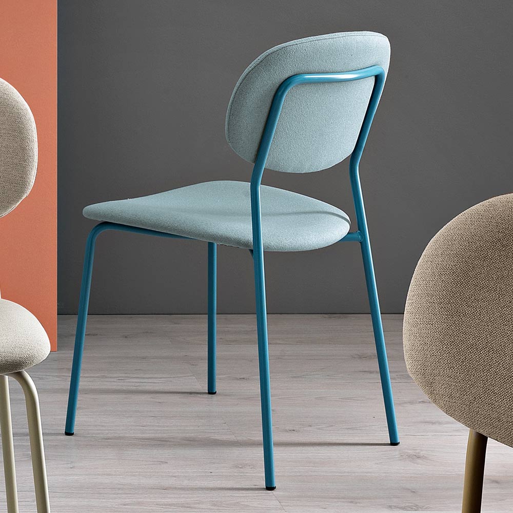 Mit seiner ergonomischen Silhouette verkörpert dieser Stuhl Komfort. Die robusten und doch eleganten Metallbeine stützen das geschwungene Design des Sitzes und bieten Stabilität, ohne die Ästhetik zu beeinträchtigen. Der Kontrast zwischen den kräftigen Farben der Sitze und den dünnen Strukturen ist eine bewusste Wahl, die die Vielseitigkeit des Designs unterstreicht und sich an eine Vielzahl von Innenumgebungen anpasst.