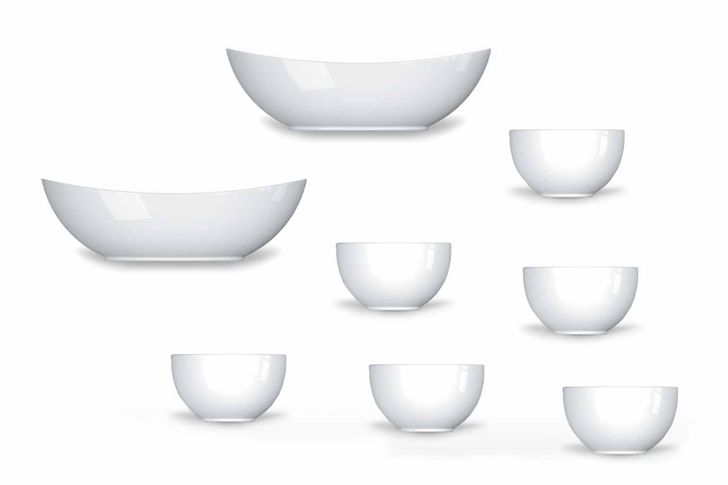 Dessert-, Obst- oder Eisbecherservice mit 2 modernen Designschalen aus weißem Porzellan, 8 Stück.
