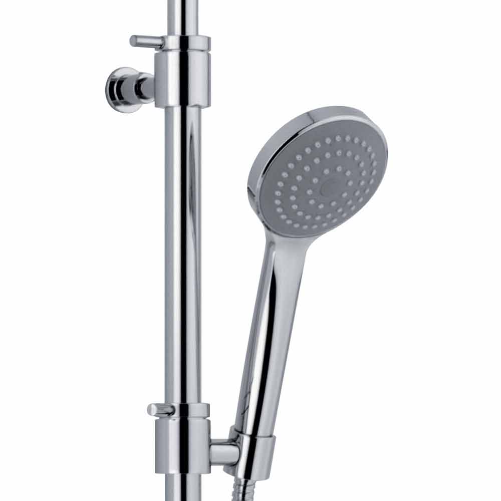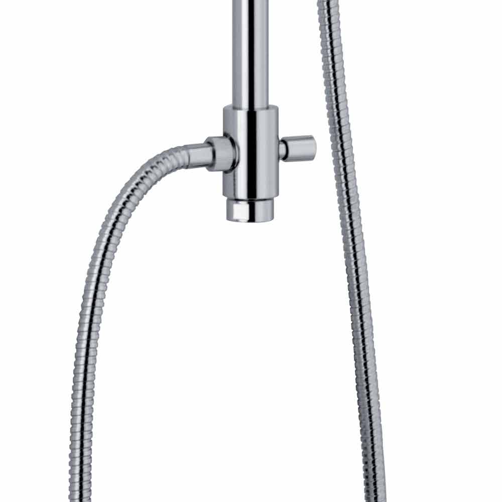 Duschsäule mit Umsteller aus verchromtem Messing mit ABS- Zubehör. Mit einer einfachen und minimalen Seele entsteht die Idee, einen traditionellen Look mit modernen Formen und Oberflächen zu kombinieren, um die perfekte Duschsäule zu schaffen. Dieser Artikel wurde vollständig in Italien hergestellt und zeigt seine Vielseitigkeit zusammen mit einer soliden und robusten Struktur, die eine hervorragende Haltbarkeit gewährleistet.