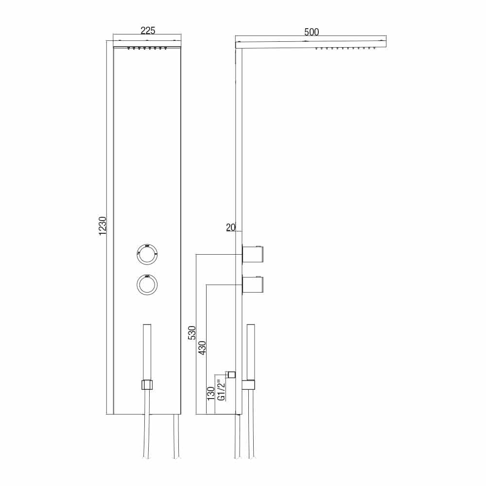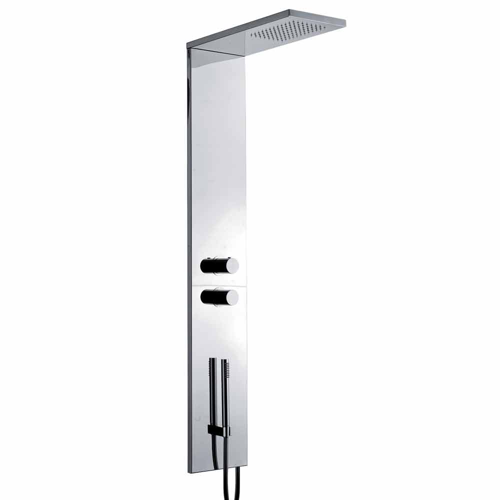 Moderne und elegante thermostatischeWandduschsäule , komplett in Italien hergestellt, aus Edelstahl mit Chromoberfläche. Die Begegnung zwischen Funktionalität und Design erweckt ein wunderbares Möbelstück zum Leben, das sich ideal dazu eignet, jedes Badezimmer mit modernen Elementen mit Originalität zu vervollständigen und zu bereichern. Seine geometrischen Linien mit wesentlichen Merkmalen bilden die perfekte Duschsäule für diejenigen, die einen raffinierten und äußerst innovativen Geschmack suchen, der die Möbel durch einen Hauch von Persönlichkeit revolutionieren kann.
