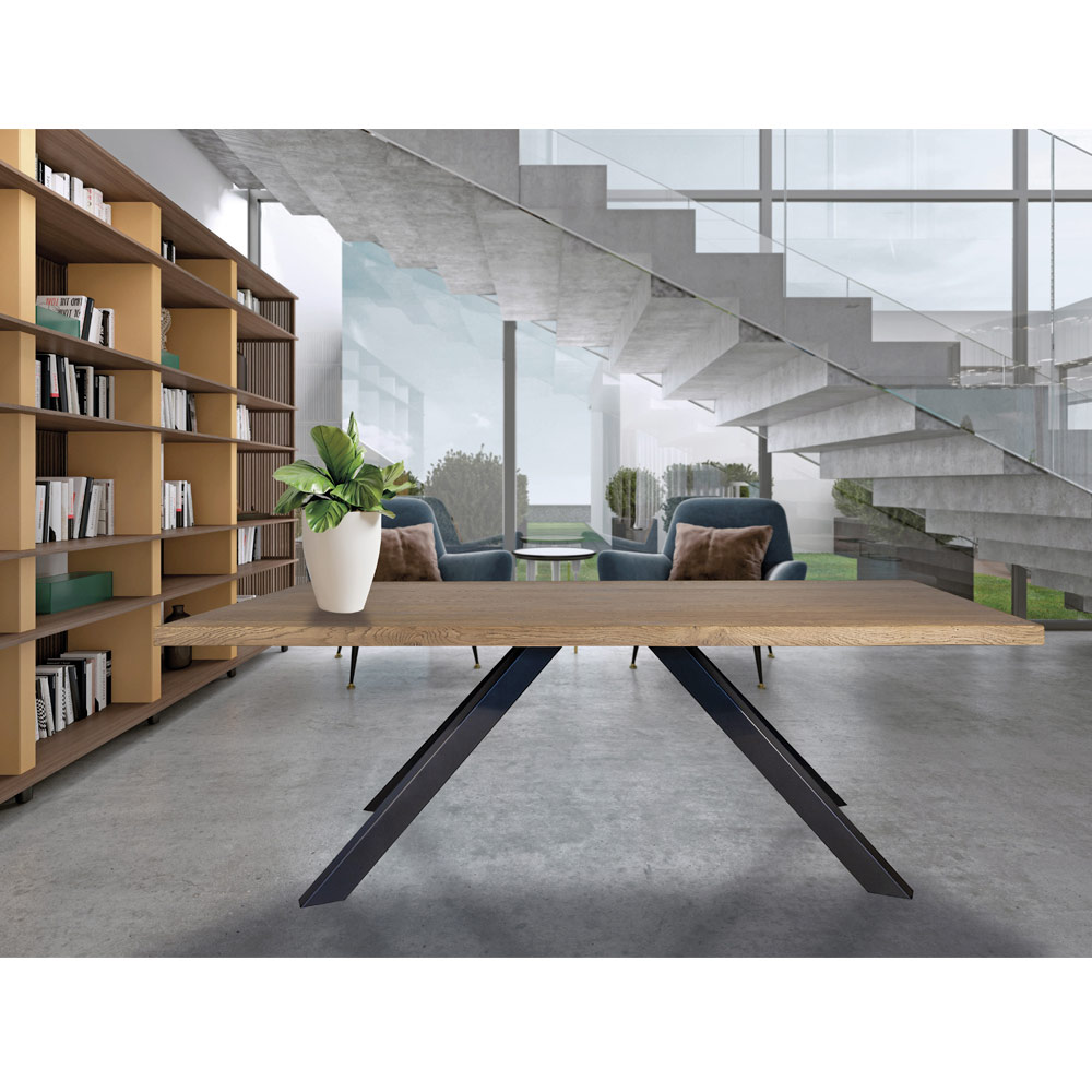 Holztisch aus entrindetem, geknotetem Eichenfurnier und Metallgestell Made in Italy.