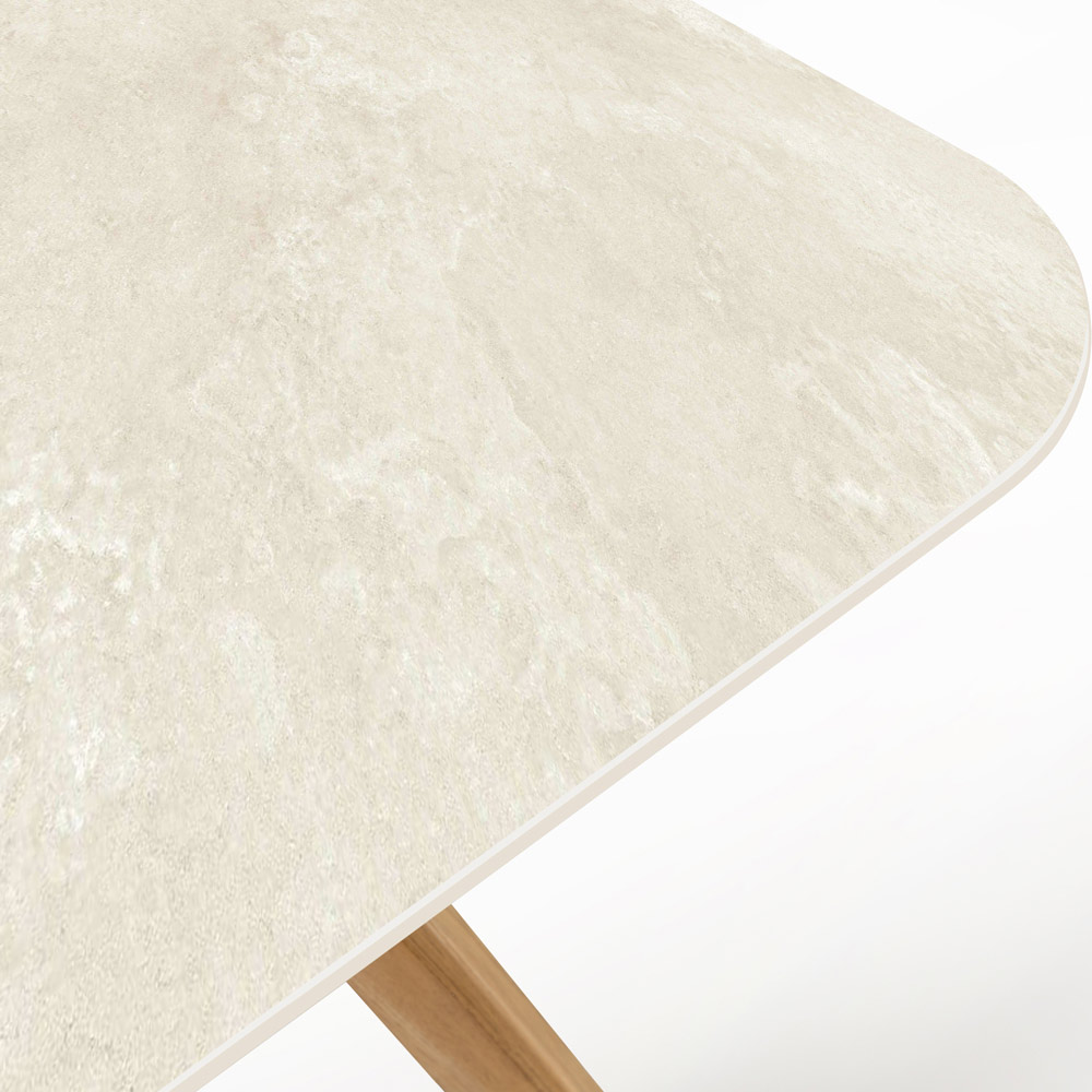 in Italien hergestellt. Dieser Gartentisch ist ein Designerstück, das mit seiner Balance aus natürlicher Eleganz und Modernität jeden Außenbereich aufwertet. Die Keramikplatte ist vom Chianca di Ostuni -Stein inspiriert, der für seine neutrale Farbe und an Naturstein erinnernde Textur bekannt ist und einen Hauch von rustikalem und dennoch modernem Stil verleiht.