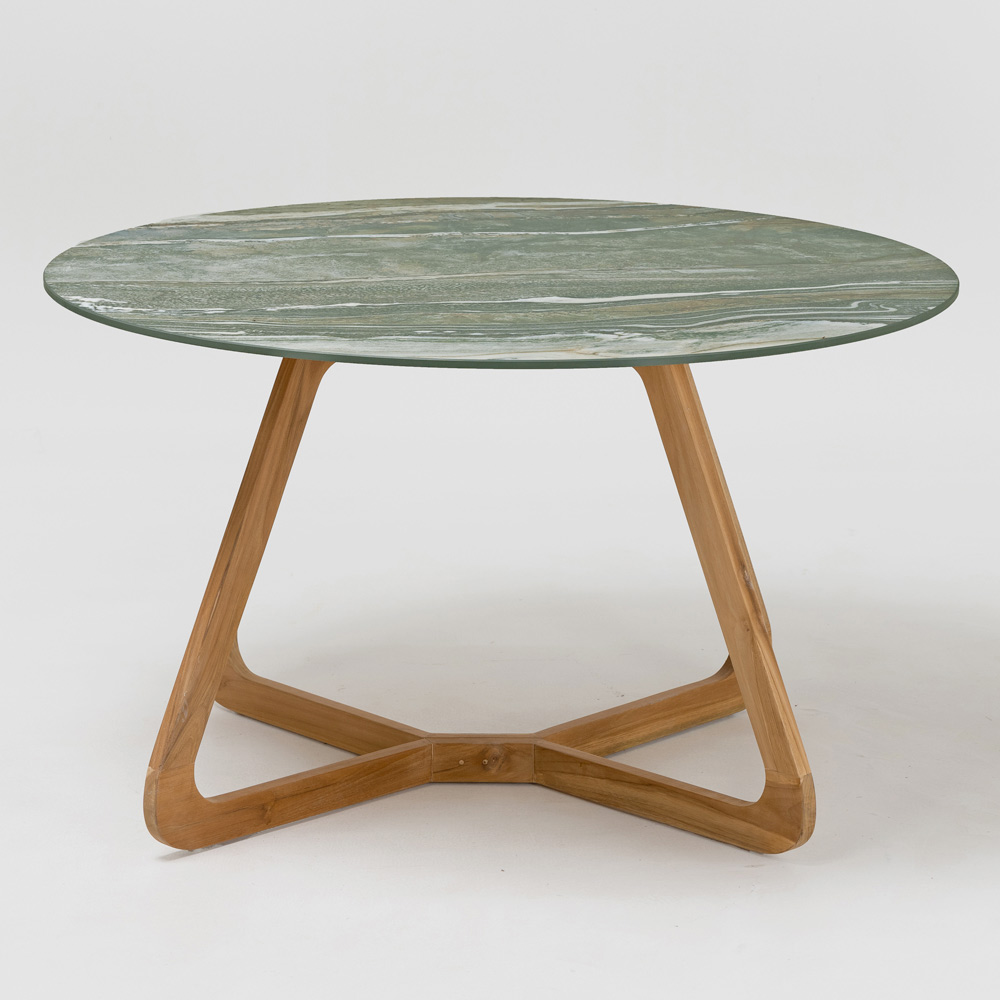 Tisch für den Innen- und Außenbereich aus Keramik und Teakholz Made in Italy