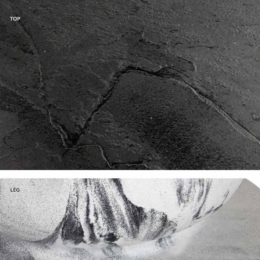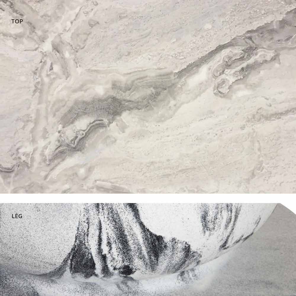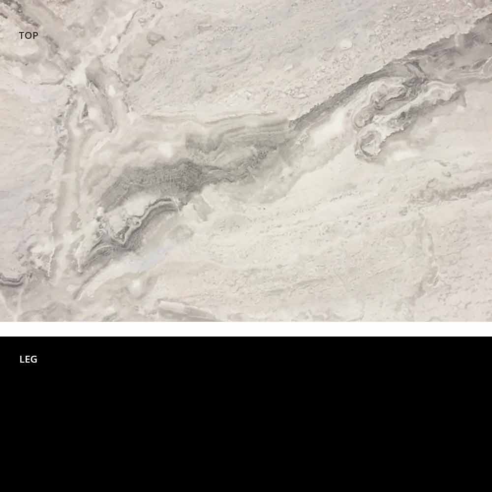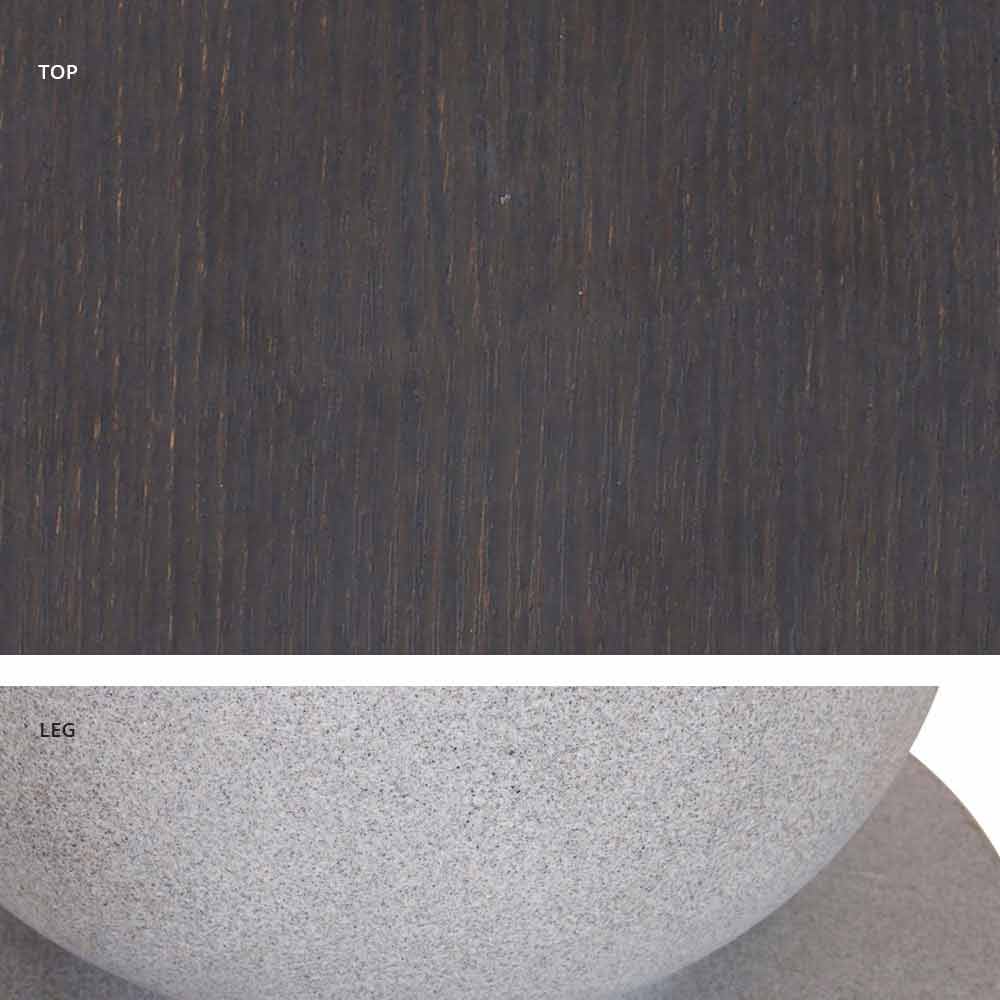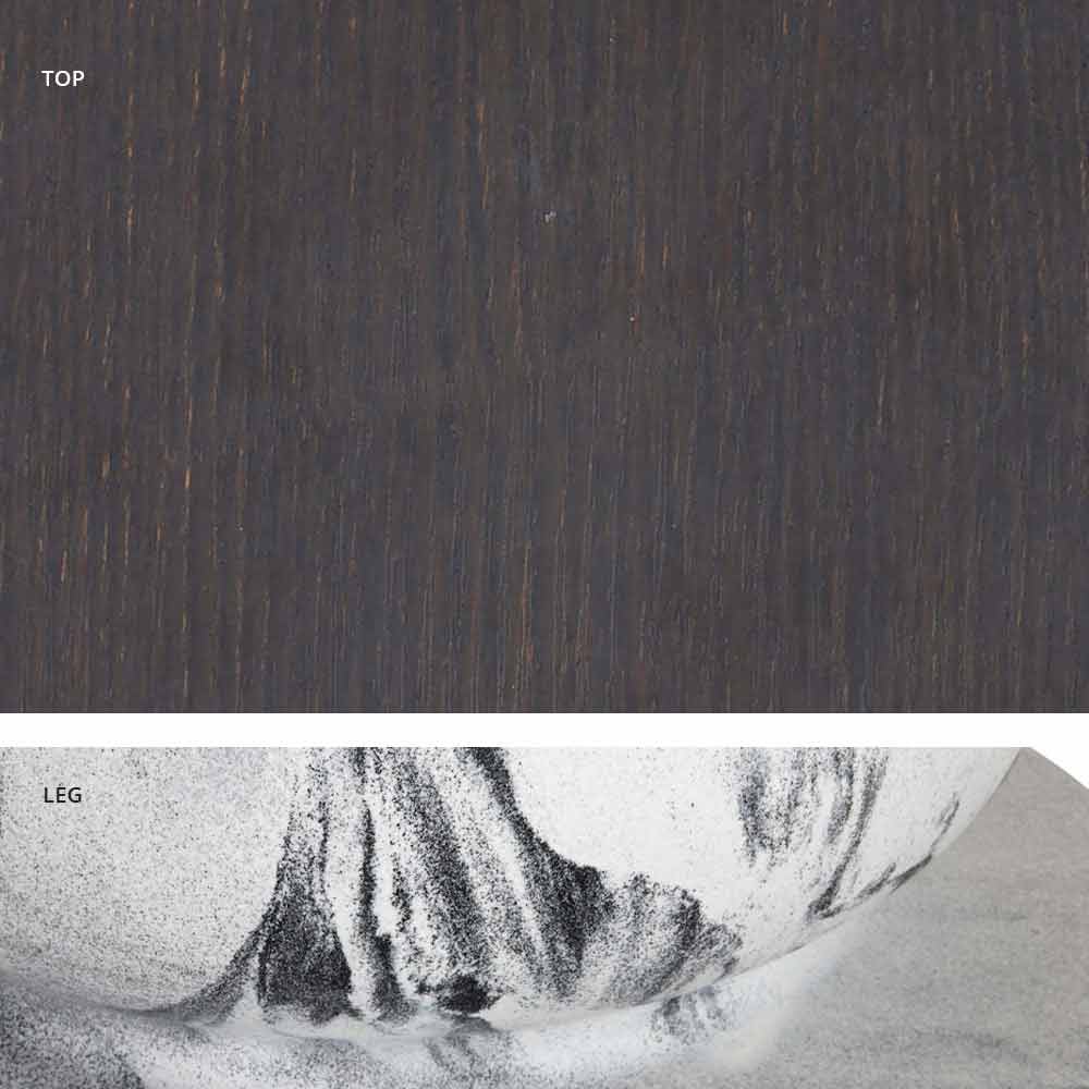 - Untergestell in Elefantengrau und Platte in Holz / Schiefer / Zement / Calacatta.