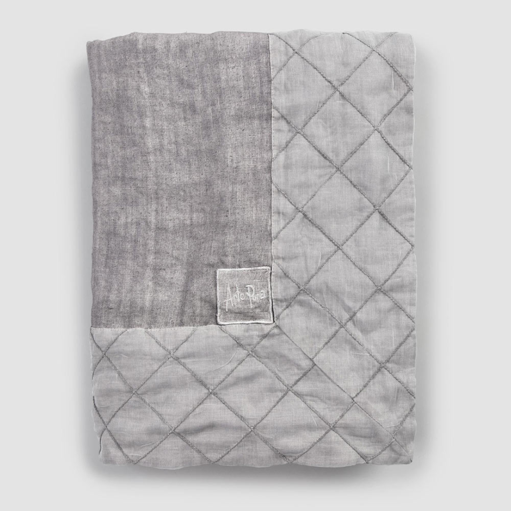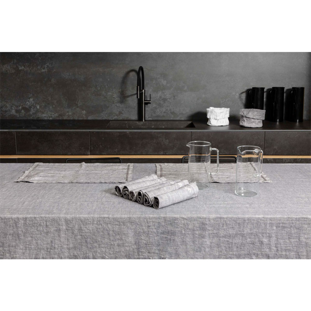 Tischdecke und Bordüre aus anthrazitfarbenem Leinen mit geometrischem Dekor, handgefertigt - Dippel