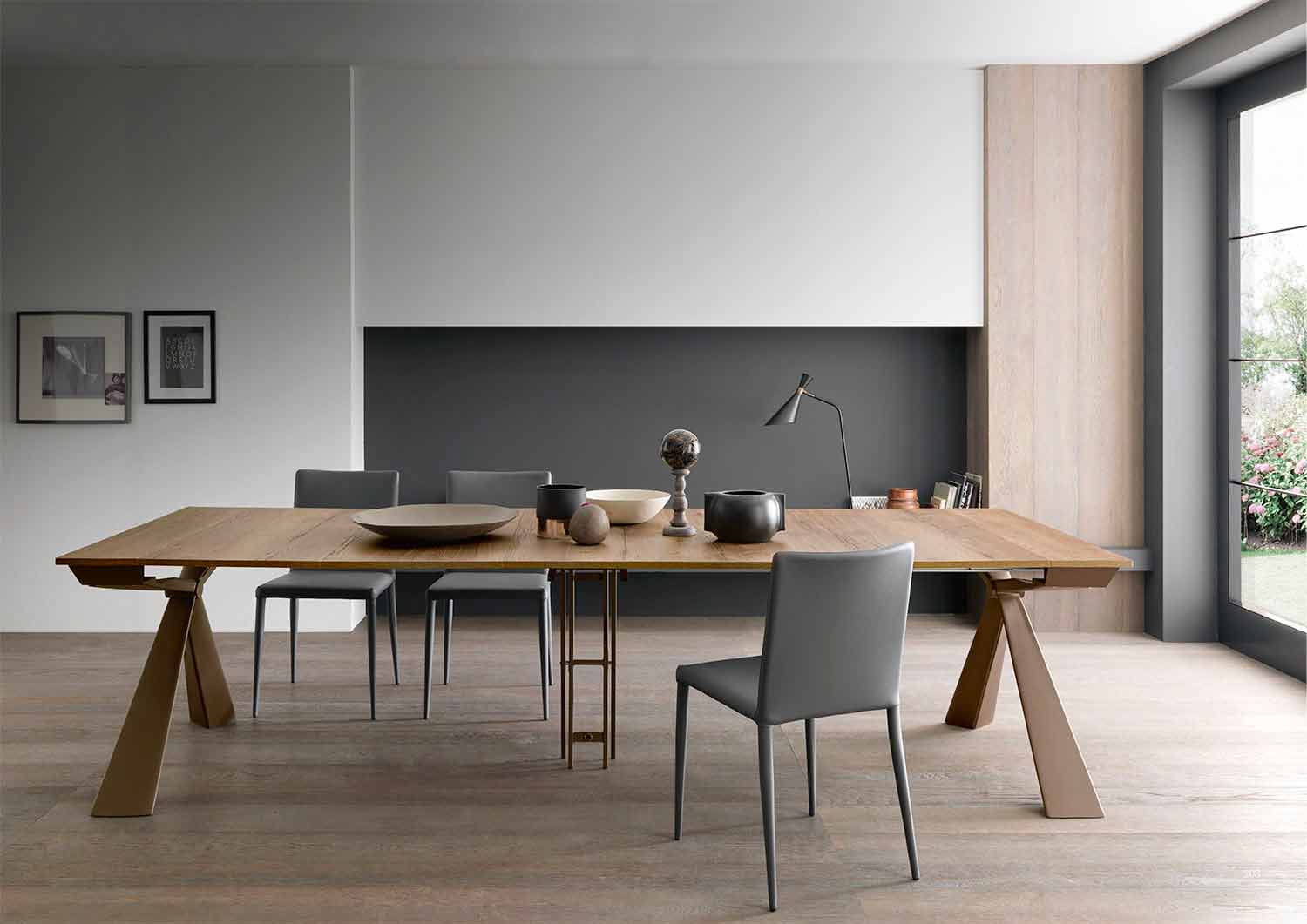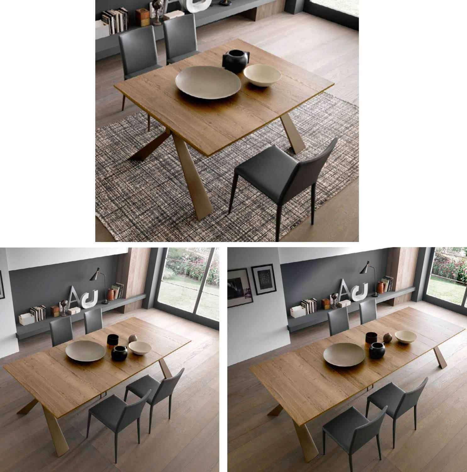 Die ausziehbare Platte ist mit maximal 3 oder 5 Verlängerungen von jeweils 50 cm erhältlich , um 4 bis 8 Personen Platz zu bieten, in der gleichen Ausführung wie die Platte und mit zentralen Stützbeinen.
