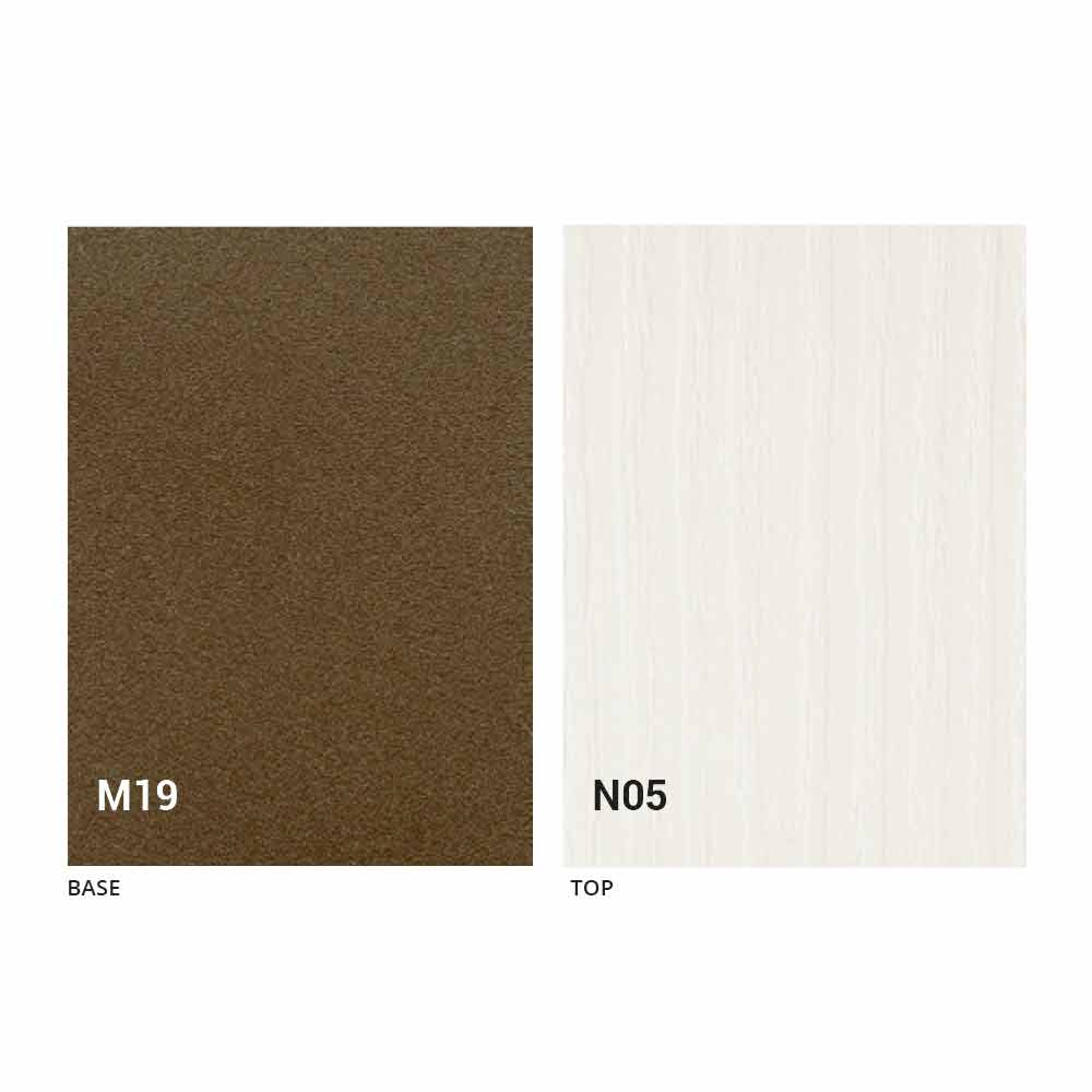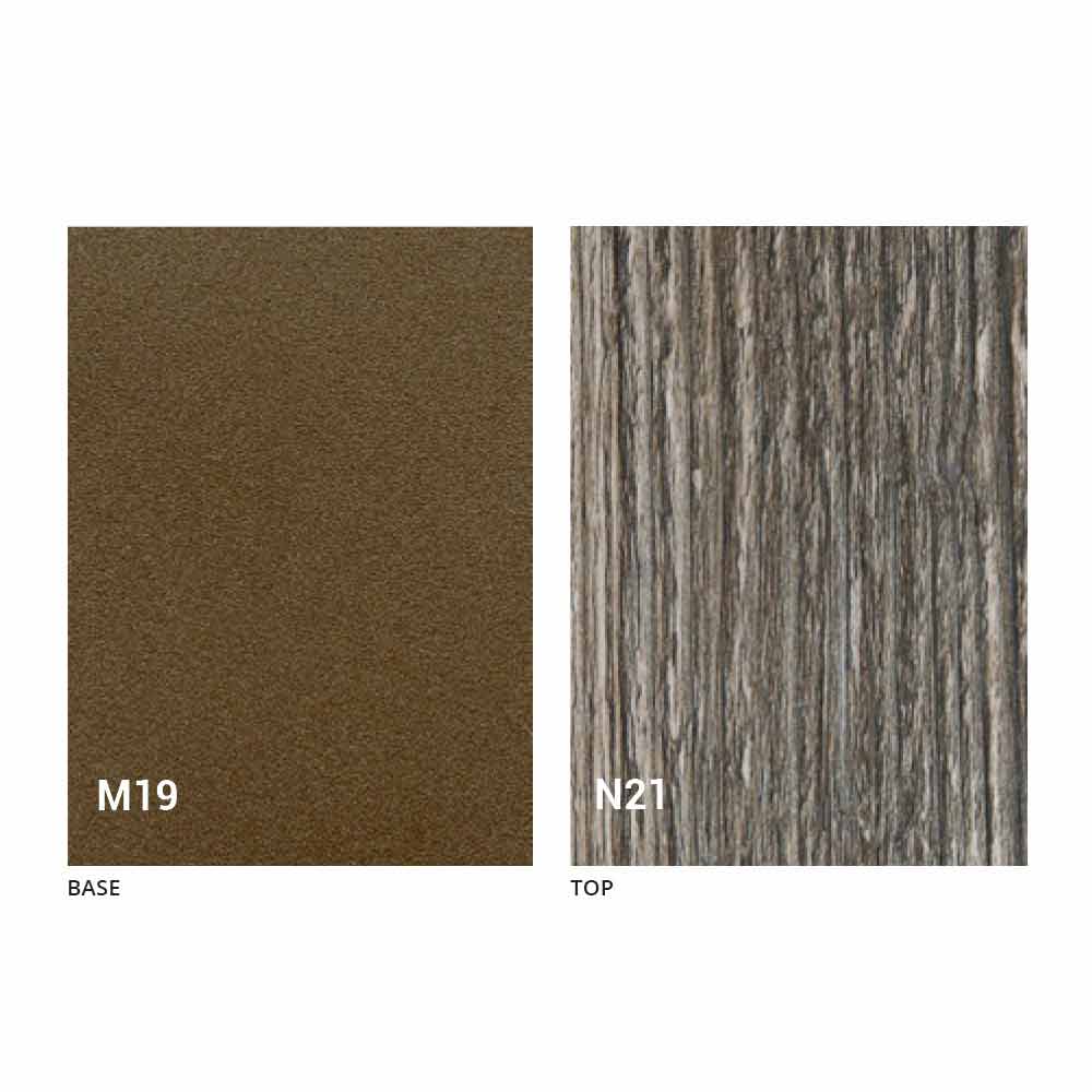 Tischplatte aus Melamin in karamellfarbener Eiche geknotet;