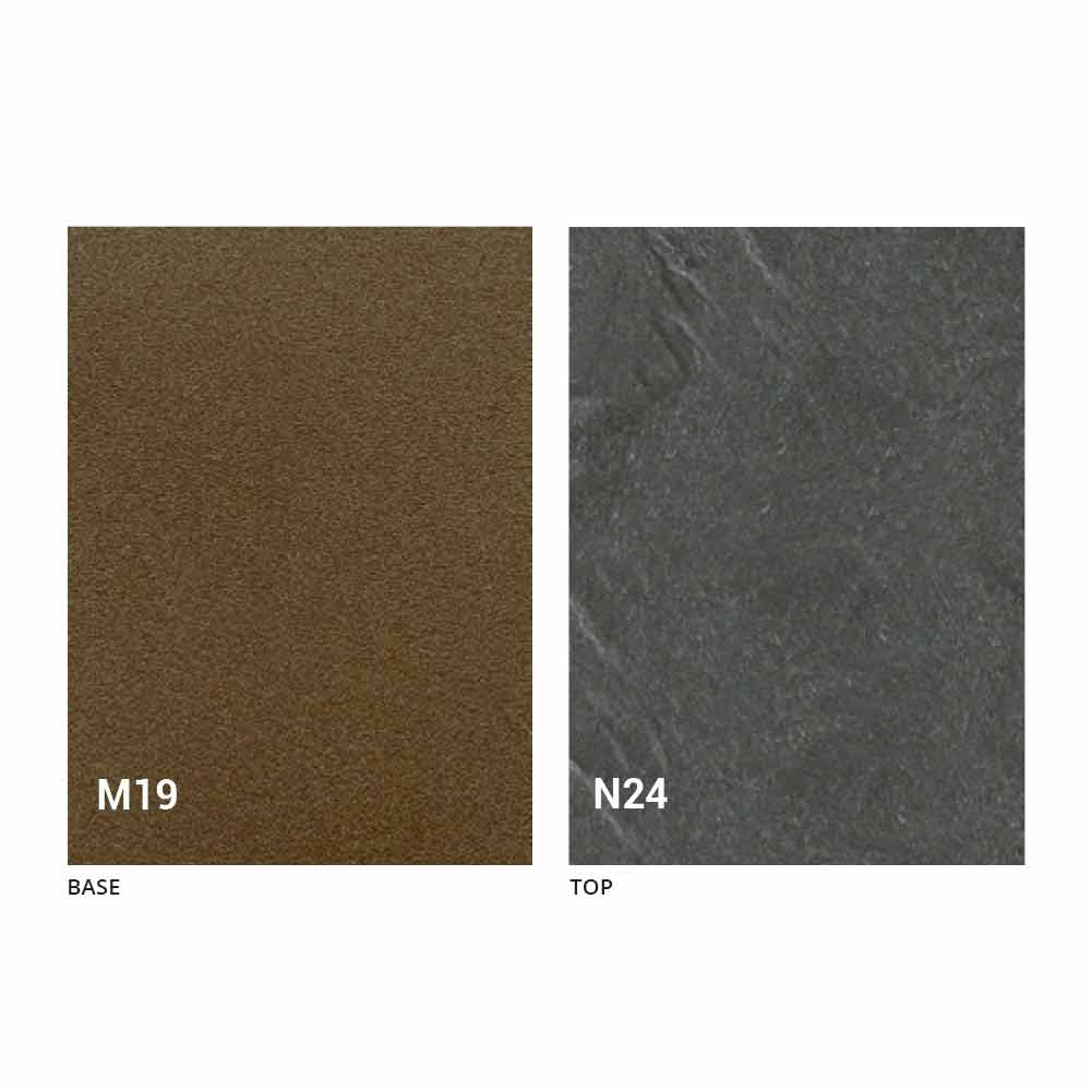 Tischplatte aus aschgrauem, harzbeschichtetem Holz;