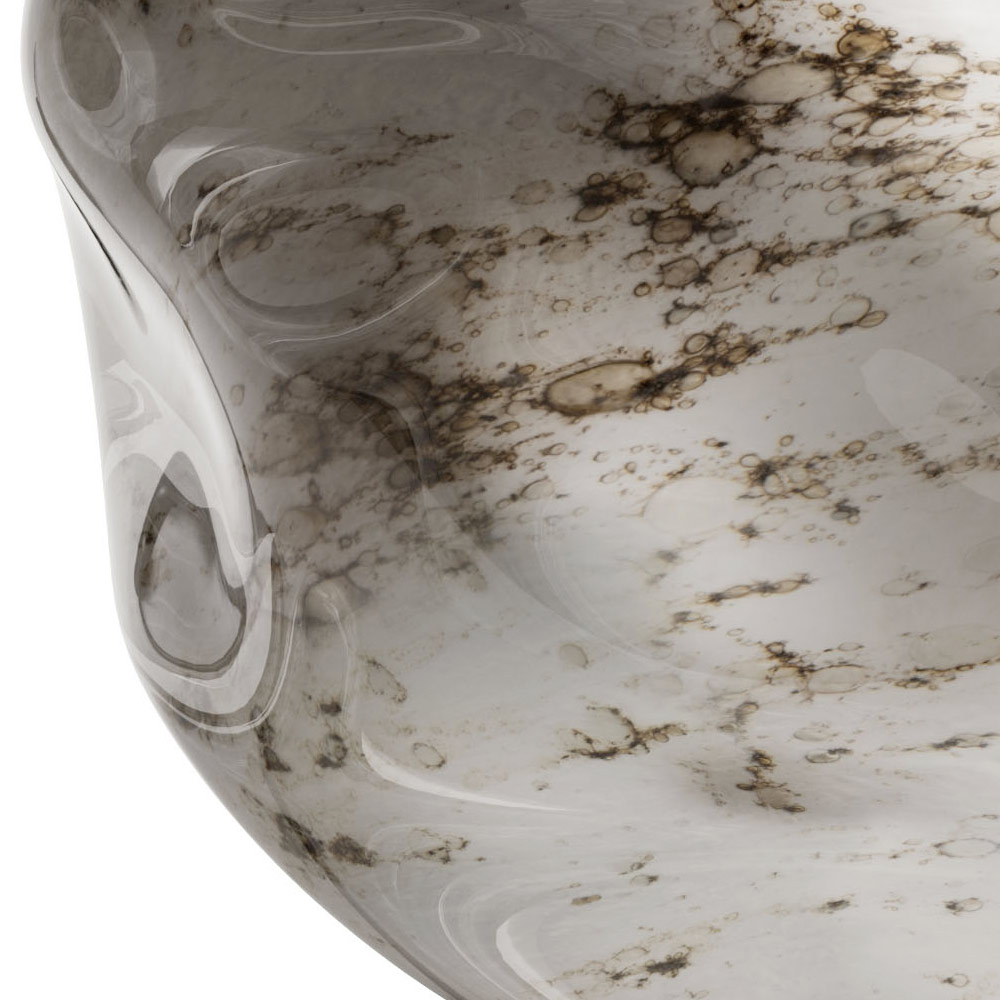 Tischlampe mit dunkler Messingstruktur und LED-Leuchten mit Steinglasabdeckung , vollständig in Italien hergestellt. Dieses Produkt ist die perfekte Verkörperung des mediterranen Stils: warm, natürlich und materiell. Jede Kugel aus Muranoglas wurde von Glasmachermeistern von Hand gefertigt, um die Erinnerung an die raue Schönheit des Steins in Erinnerung zu rufen. Das mit Metallpulver angereicherte Glas wird jedes Mal fachmännisch geformt, um einzigartige und niemals reproduzierbare Stücke zu schaffen, und das ist der wahre Wert dieses Elements. Die dunkle Messingstruktur verleiht ihm einen rustikalen Touch, der ihn perfekt für jede Umgebung macht und ihm einen modernen und zeitlosen Look verleiht.