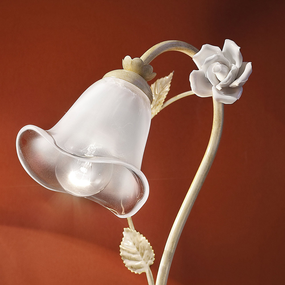 Tischlampe aus Eisen, Glas und Keramik mit Rosendekor, hergestellt in Italien von Ferroluce.
