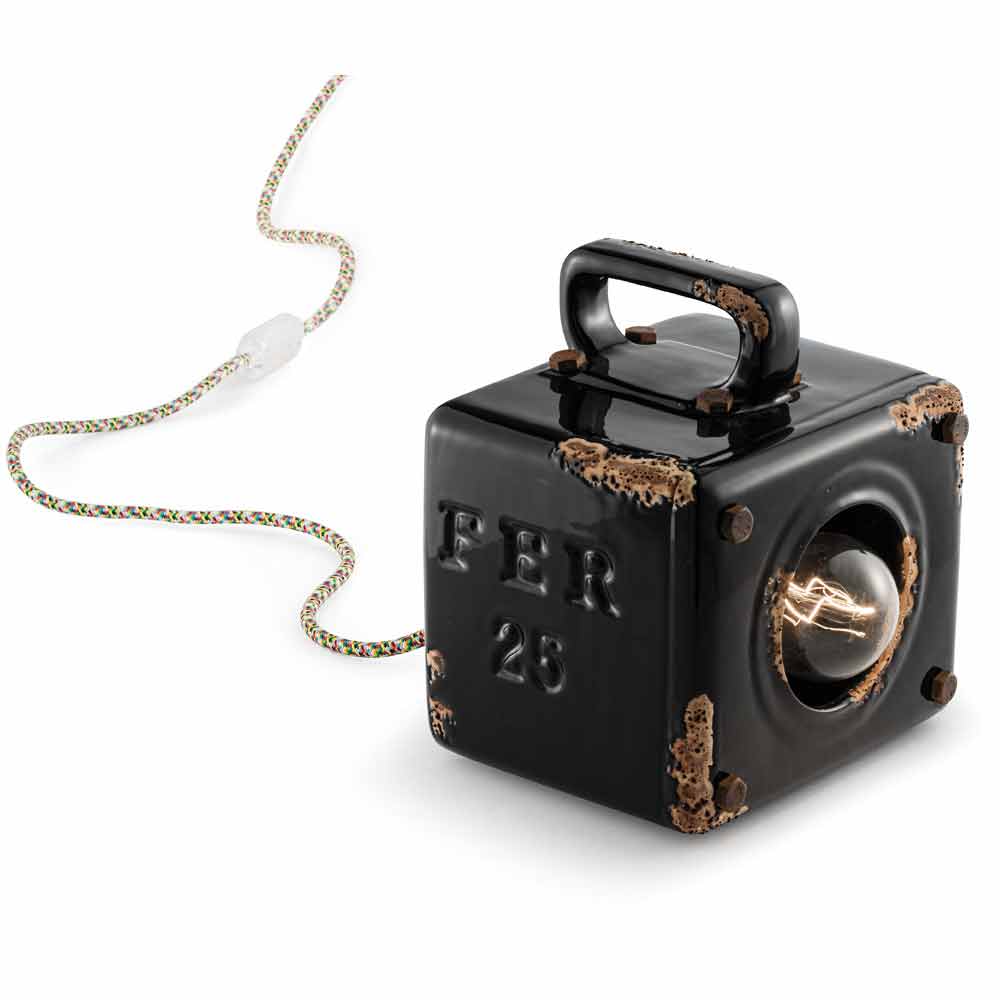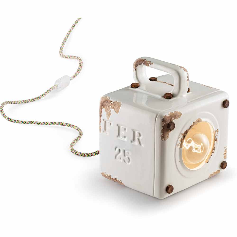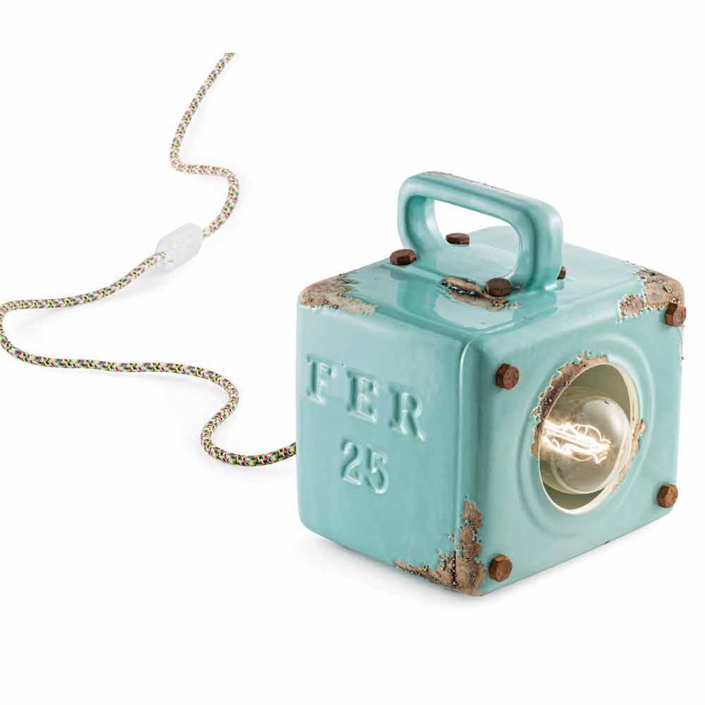 Tischlampe im Industriestil aus Keramik und Eisen Valerie Valerie ist eine fantastische Tischlampe mit kubischer Form und Vintage-Industriestil, die von erfahrenen Handwerkern in Italien handgefertigt wird. Diese schöne Lampe besteht aus glänzender Keramik, ist in verschiedenen Farben erhältlich und mit einem mehrfarbigen Kabel angereichert. Die Besonderheit dieser Leuchte liegt in der handwerklichen Verarbeitung der Keramik. Die Keramik ist in der Tat so dekoriert, als ob die Zeit ihren Weg gezeichnet hätte. Die Reproduktion der Erosion der Zeit in Kombination mit den glänzenden Oberflächen verleihen dieser Tischlampe diesen zusätzlichen Wert. Dieser abgenutzte Effekt verleiht Valerie einen raffinierten Vintage-Industrial-Stil. Leuchtende Farben, glänzende Oberflächen und raffinierte Alterungsspuren für ein aktuelles Profil im Gewand eines vergangenen Stils. Die Schrauben in Corten-Finish sind das Detail, das diese Tischlampe vervollständigt und ihr den industriellen Geschmack verleiht. Ideal für die Dekoration eines Landhauses im englischen Stil. Diese Lampe, die für Umgebungen mit einer einhüllenden Atmosphäre geschaffen wurde, kann dank eines einzigartigen und originellen Designs die anspruchsvollsten Anforderungen erfüllen. Ein Design, das sich dem Luxus widersetzt, aber harmonisch mit ihm koexistiert. Design, das die Wesentlichkeit des Gebrauchs bewahrt und mit einer feinen Balance zwischen Formen und Tönen beruhigt. Valerie erweckt ein reines Licht ohne Abschirmung zum Leben. Es sind diese einfachen und zarten Formen, die die Aufmerksamkeit auf sich ziehen und die Valerie in die Lage versetzen, sich an jedes Dekor anzupassen, vom einfachsten und minimalistischsten bis zum klassischsten, wodurch ein zarter Kontrast entsteht. Bringen auch Sie einen Hauch von Design in Ihr Zuhause! Kleine Details für große Wirkung mit antikem Flair! Lampe in verschiedenen Ausführungen erhältlich. Überprüfen Sie die Farbkarte und geben Sie den gewünschten Finish-Code in das entsprechende Feld ein!