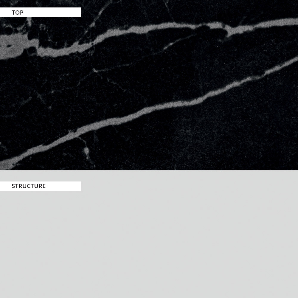 Esstisch für den Außenbereich, bestehend aus einer Struktur aus lackiertem Aluminiumguss und einer Platte aus Feinsteinzeug mit schwarzer Marmoroptik , vollständig in Italien hergestellt . Sein raffinierter Stil zeigt sich in der eleganten Kombination aus wesentlichen Linien und Formen, die Einfachheit und Funktionalität für einen originellen und raffinierten visuellen Effekt vereinen. Ein Möbelstück, das durch die Verarbeitung mit hochwertigen Materialien imLaufe der Zeit Solidität und Widerstandsfähigkeit bietet und sich als hervorragend für die Einrichtung jedes Außenbereichs mit unverwechselbarem Charakter erweist.