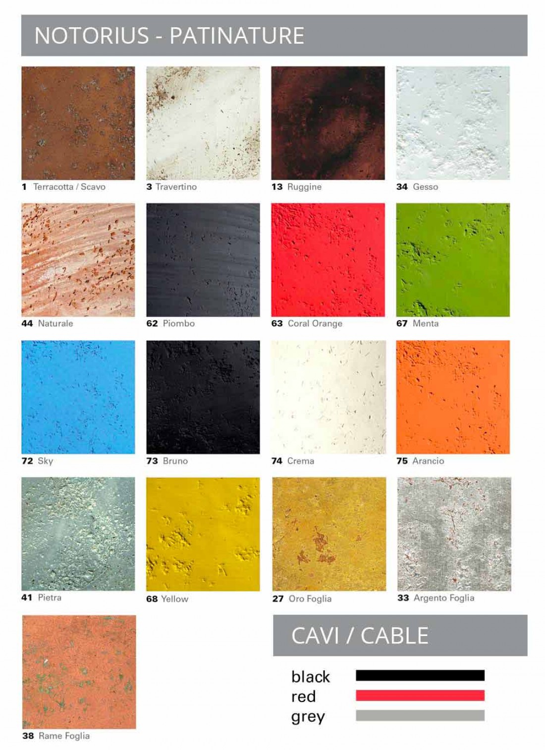 Bitte beachten Sie: Die Lampe ist in verschiedenen Farbvariationen erhältlich, sowohl für die äußere Ausführung als auch für die innere Ausführung und für den Schirm des Stromkabels. Sehen Sie sich die Farbkarte an und geben Sie die gewünschten Farbcodes in das entsprechende Feld ein.