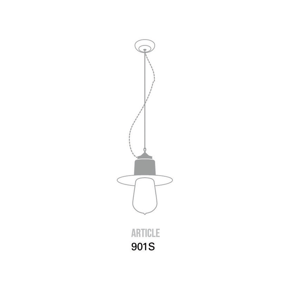 Einzelne Pendelleuchte mit Rosette. Abmessungen : Basis Ø12 Platte Ø23 Glas Ø10 H.150 Leuchtmittel : 1 x E27 max. 70 W, IP 44 – nicht im Lieferumfang enthalten