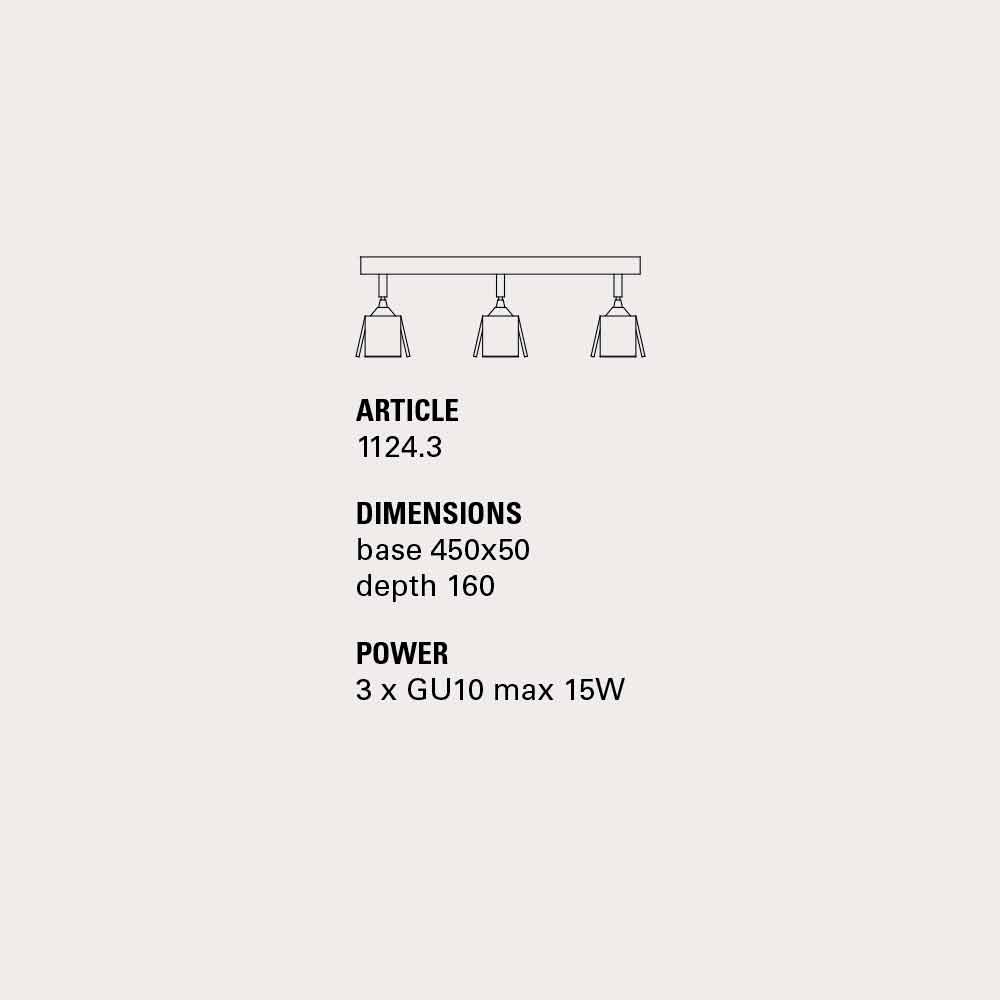 Abmessungen: Basis L.45xH.5 TH.16 Leuchtmittel: 3 x GU10 max 15W IP 20 - nicht im Lieferumfang enthalten