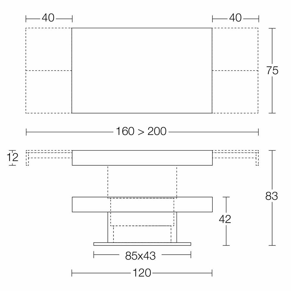 Die Platte kann mit zwei seitlichen Verlängerungen von jeweils 40cm (innen) erweitert werden.
