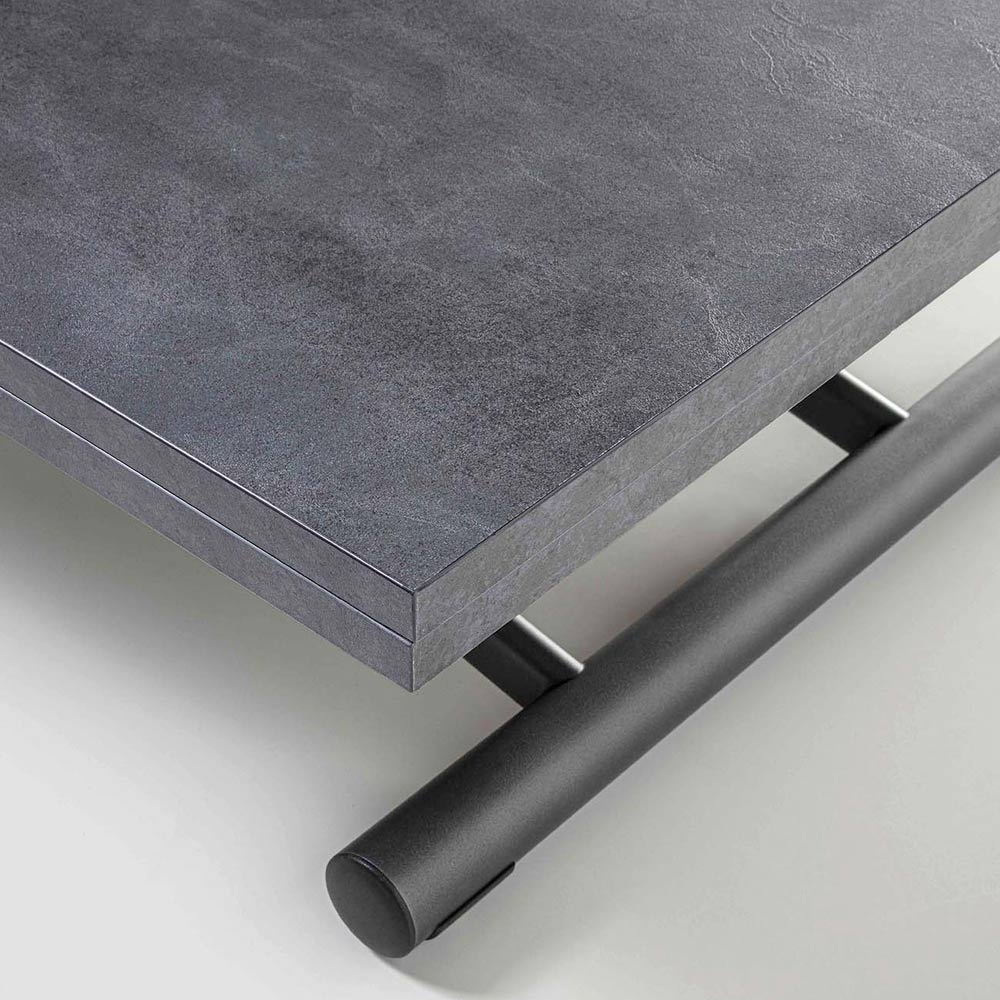Couchtisch mit Melaminplatte und anthrazitfarbener Metallbasis . Die Besonderheit dieses einzigartigen und innovativen Couchtischs ist seine Struktur, die es ermöglicht, ihn schnell und einfach in einen praktischen Esstisch zu verwandeln. Diese Funktion maximiert die Funktionalität und ermöglicht es, zwei Elemente in einem zu erhalten und gleichzeitig die Räume zu optimieren, da die Tabelle nach dem Schließen klein ist. Auf diese Weise erhalten Sie eine multifunktionale Auflagefläche, die sich sowohl für Mittag- und Abendessen mit Freunden als auch für Getränke, Zeitschriften, Bücher usw. in Ihrem Wohnzimmer eignet. Das Design wird durch raffinierte und minimalen Funktionen können skizzierte Ihre häuslichen Umgebung mit Eleganz und Funktionalität liefern, die alle Aufmerksamkeit auf sich anzieht.