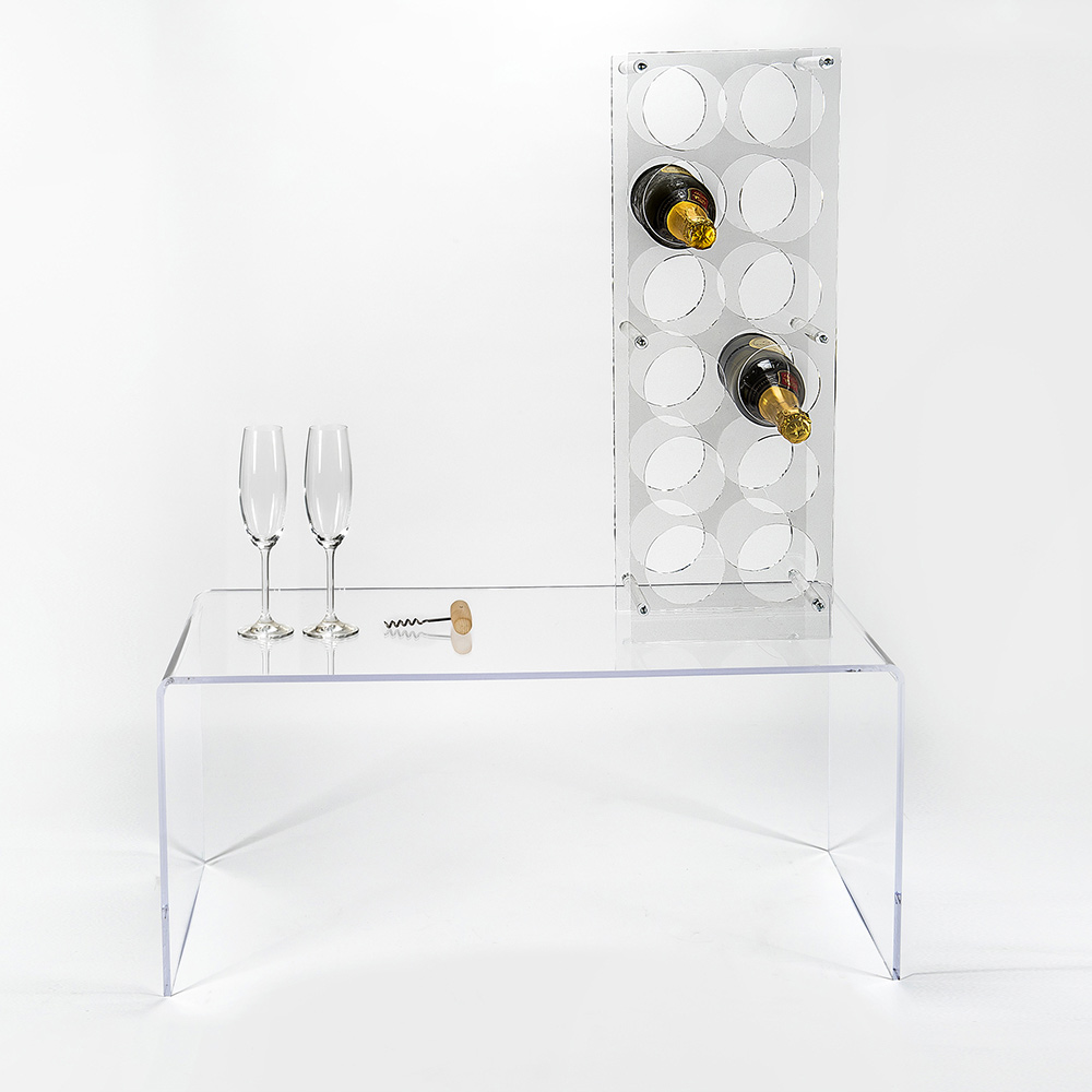Made in Italy Flaschenregal für 12 Plätze aus durchsichtigem Plexiglas und Holz.