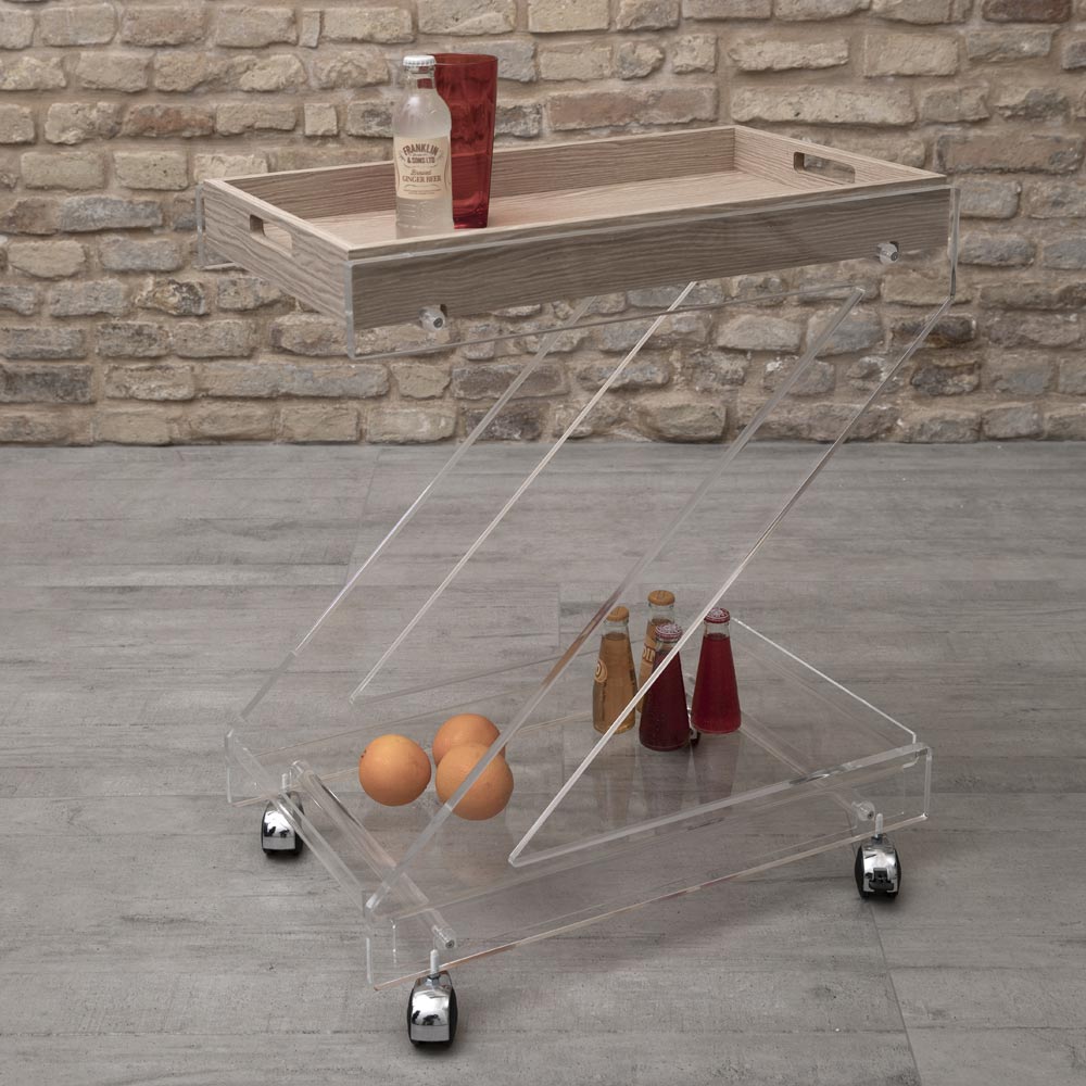 Trolley 2 Regale aus transparentem Acrylglas mit Tablett - Zazza