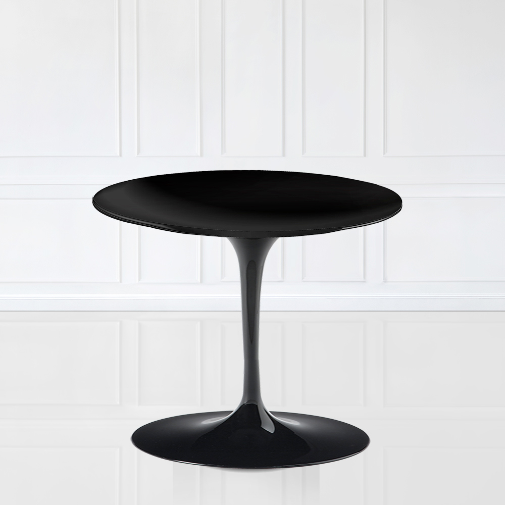 Komplett in Italien hergestellter Couchtisch mit runder Platte aus schwarzem Flüssiglaminat und Untergestell aus schwarz poliertem Aluminium. Dieser Tisch ist aus hervorragend verarbeiteten Materialien gefertigt, die Qualität und Langlebigkeit gewährleisten. Die Verbindung zwischen der Oberfläche aus flüssigem Laminat und dem Untergestell aus poliertem Aluminium bietet eine Einrichtungslösung mit einem einfachen und raffinierten Design, ideal für diejenigen, die es lieben, jede Art von Wohnumgebung mit Geschmack und Linearität einzurichten. Es ist ein hervorragendes Element von Funktionalität und Eleganz für jede Umgebung und gleichzeitig ein Designobjekt und ein benutzerfreundliches Möbelstück. Dank seiner Vielseitigkeit und der Frische seiner Struktur lässt sich dieses Produkt in verschiedene Einrichtungsstile einfügen, von klassisch über modern bis schick.