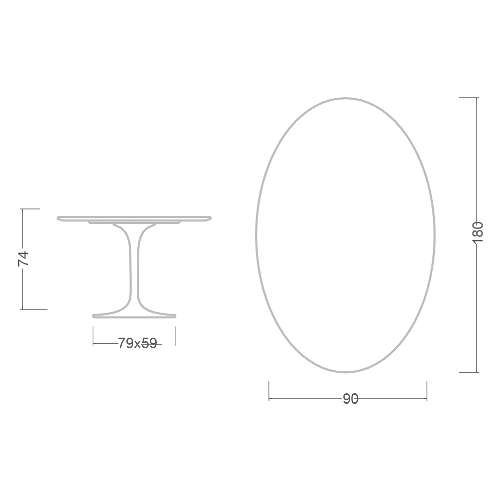 Oberteil: 180cm x 90cm - Ovaler Sockel: 79cm x 59cm x Höhe 74cm