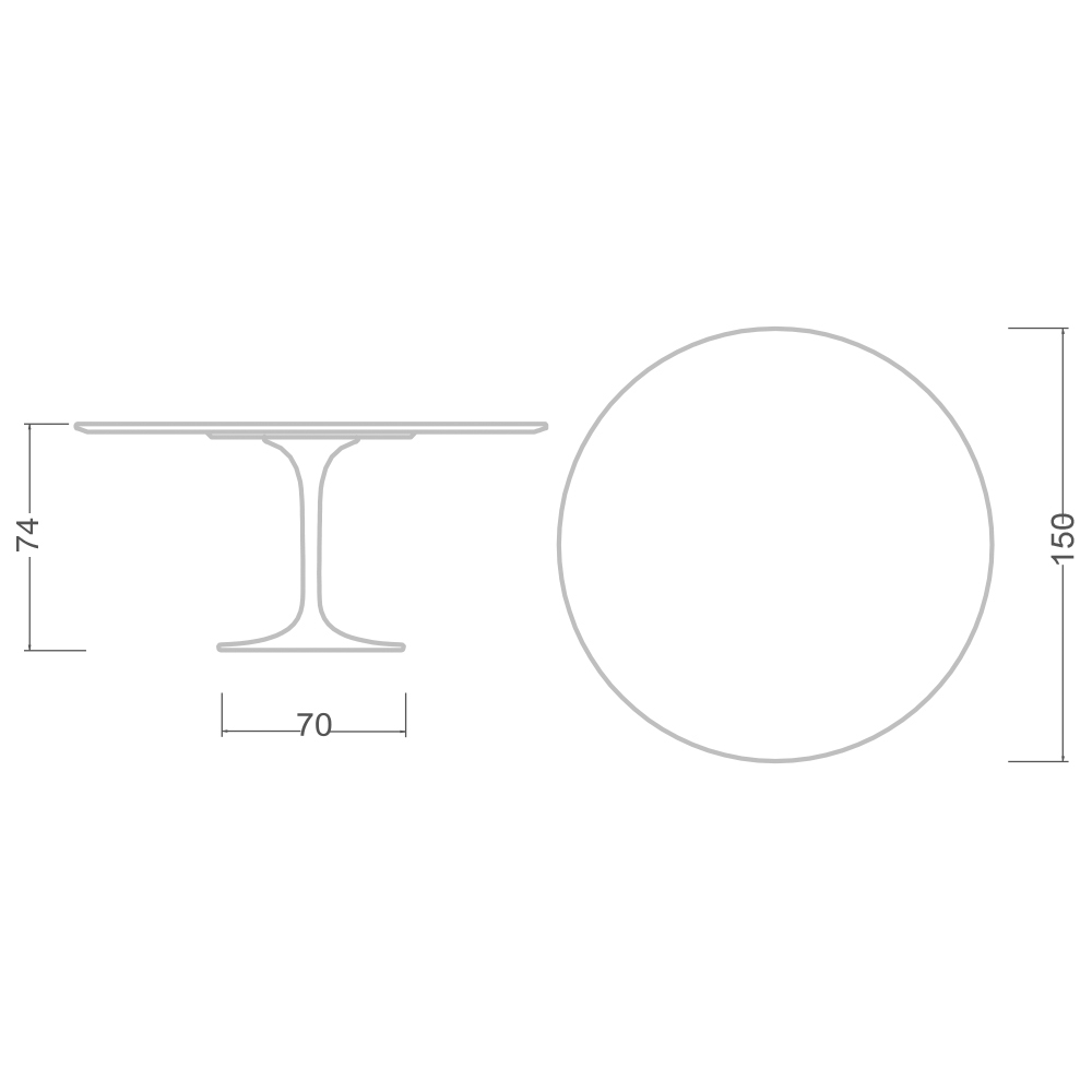 Tischplattendurchmesser 150 x H 73 cm / Fußdurchmesser 70 cm
