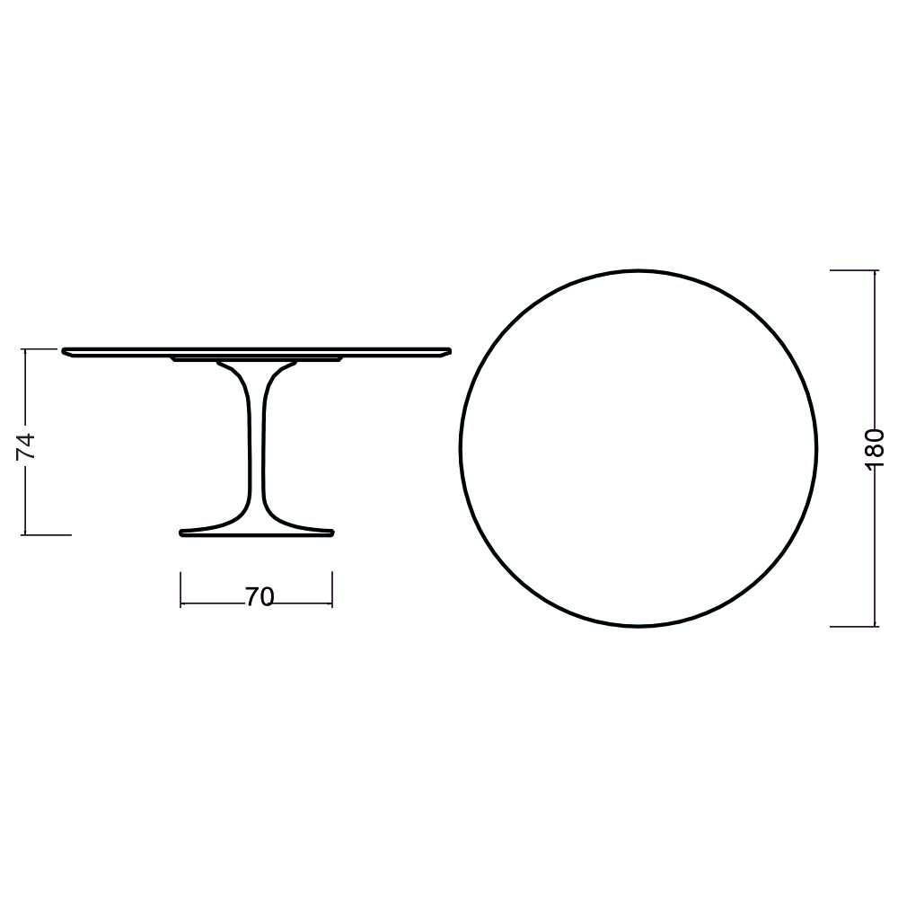 - Tischplattendurchmesser 180 x Höhe 74 cm / Fußdurchmesser 70 cm