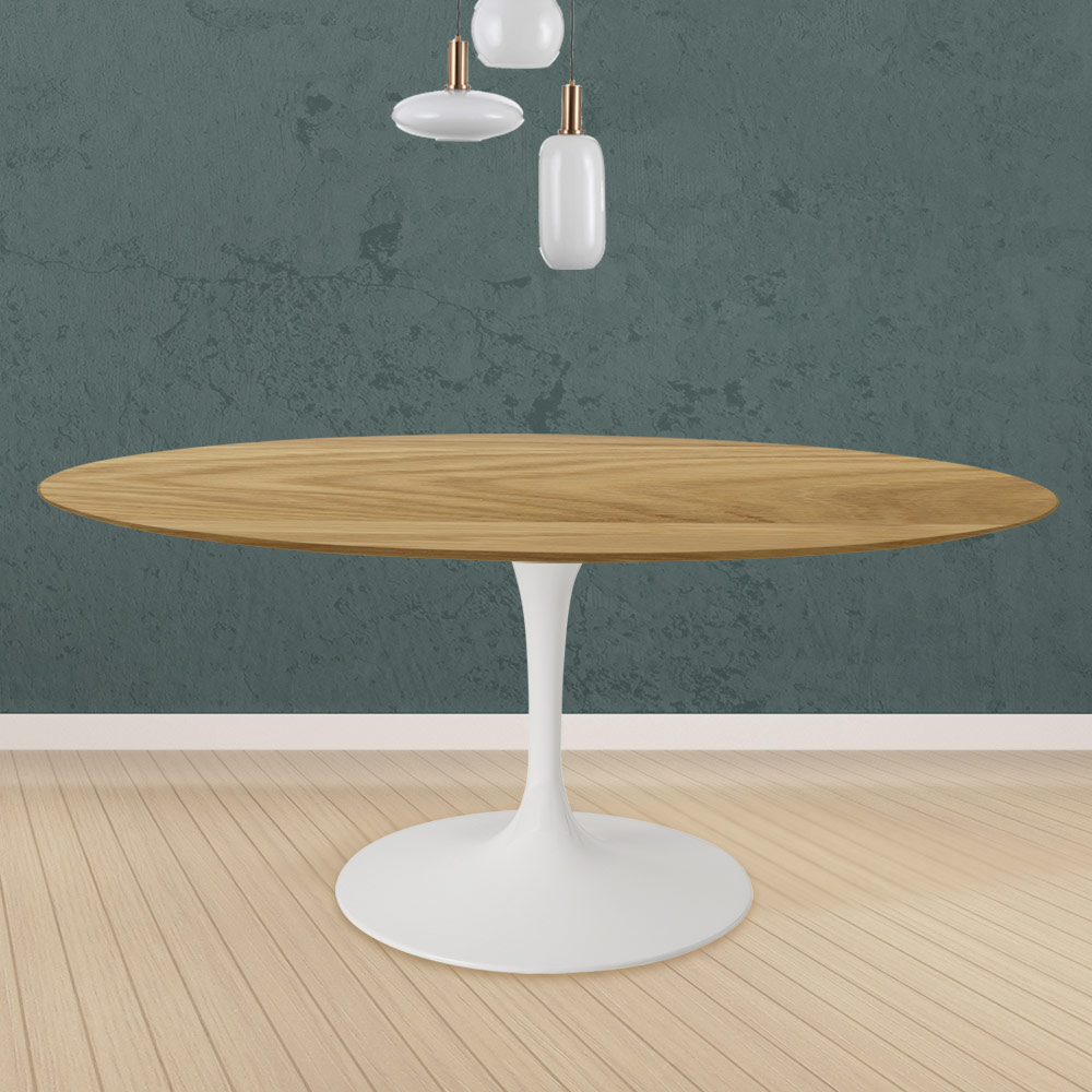 Runder Esstisch aus natürlicher Eiche und poliertem Aluminium Made in Italy