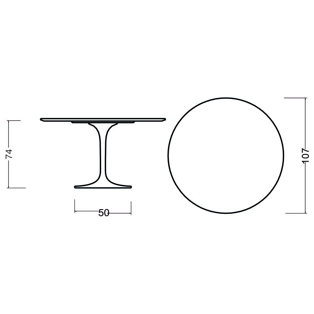 - Tischplatte Durchmesser 107 x Höhe 74 cm / Fußdurchmesser 50 cm