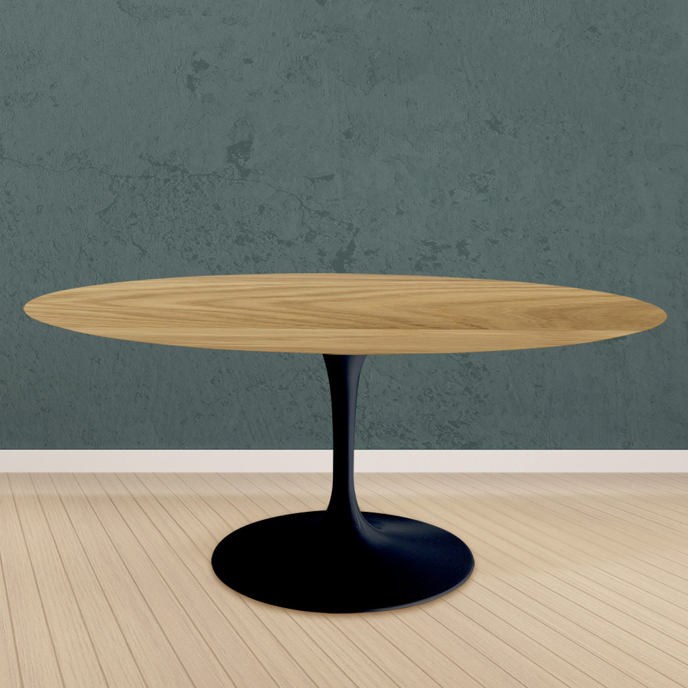 linearen und eleganten Ausführungen. Die Verbindung zwischen der natürlichen Eiche der Platte und dem polierten Aluminium des Sockels garantiert