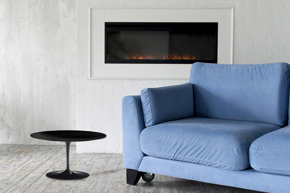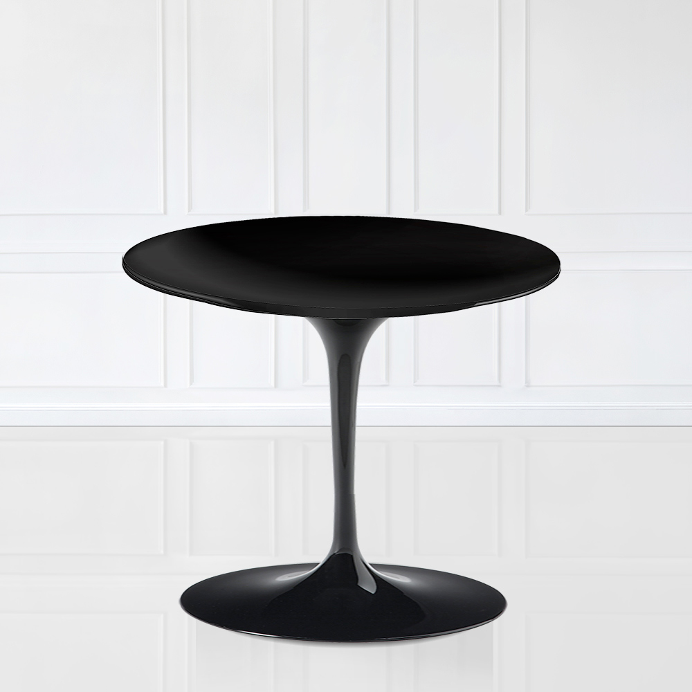 In Italien handgefertigter Couchtisch mit runder Platte aus schwarzem Flüssiglaminat und Untergestell aus schwarz poliertem Aluminium . Couchtisch, der dank seiner geradlinigen und eleganten Oberflächen , die ihm einen modernen und schicken Touch verleihen, zu jedem Einrichtungsstil passt. Dieses Element passt perfekt in jede Wohnumgebung, passt sich aber dank seiner Raffinesse und Finesse auch anderen Räumen an. Das flüssige Laminat der Oberseite und das polierte Aluminium der Basis verleihen diesem Einrichtungsaccessoire Qualität und Widerstandsfähigkeit im Laufe der Zeit und machen es für jeden Anlass und jede Veranstaltung funktionell. Einfachheit und Zweckmäßigkeit sind die Schlüsselwörter, um diesen Couchtisch zu beschreiben, der die perfekte Idee ist, um die Einrichtung jedes Ortes und jeder Einrichtung zu vervollständigen.