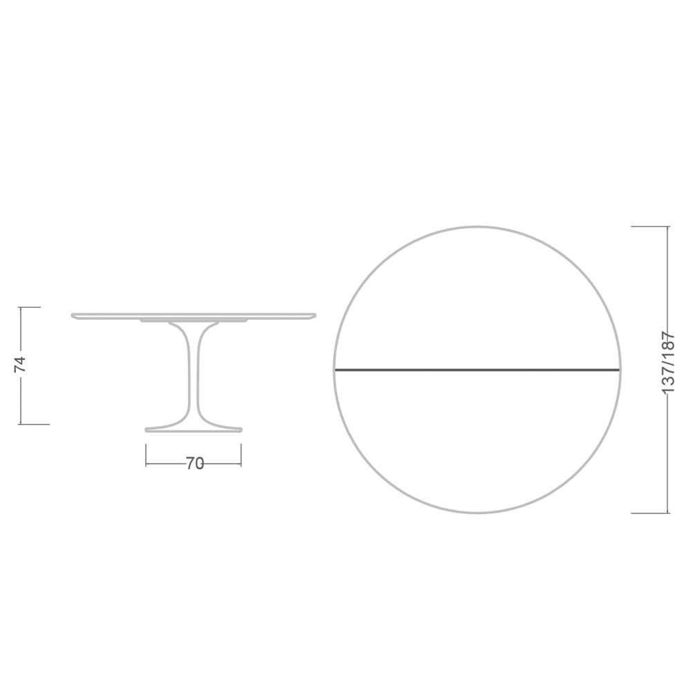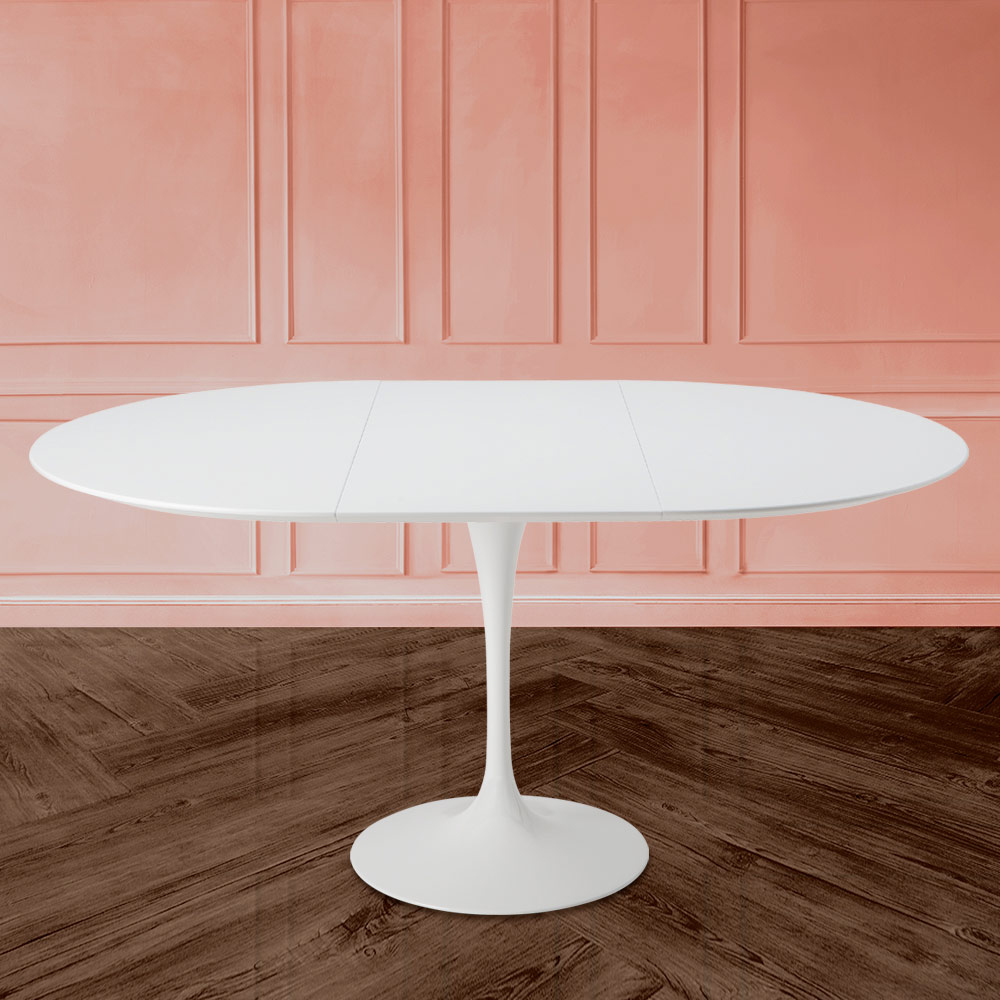 Ausziehbarer Esstisch bis 187 cm mit weißer Flüssiglaminat Platte und weißem poliertem Aluminium Fuß komplett Made in Italy. Dieses Möbelstück entspricht den Anforderungen an Funktionalität und Anpassungsfähigkeit in jeder Wohn- und Küchenumgebung. Raffiniert und mit einfachen Linien, kann es in alle Einrichtungen eingefügt werden, um jeden Raum besser zu vervollständigen. Die Möglichkeit, ihn zu erweitern, macht ihn zu einem einzigartigen Element, das dem Bedürfnis nach mehr Sitzplätzen entgegenkommt, auch dank der Form des Untergestells, das das Einsetzen mehrerer Stühle begünstigt. Dieser Tisch ist die perfekte Idee, um etwas Originales und Elegantes zu haben, aber gleichzeitig nützlich für alle Gelegenheiten und Veranstaltungen.