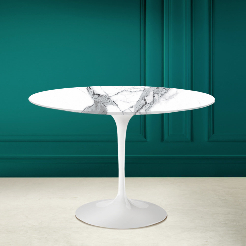 Esstisch mit runder Platte aus Statuario-Keramik sehr hoch Made in Italy