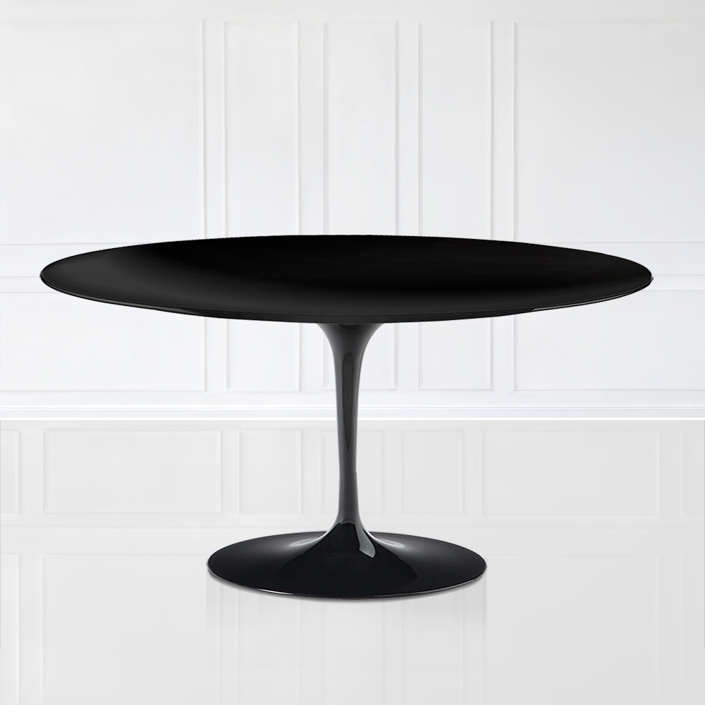 Komplett in Italien hergestellter Esstisch mit ovaler Platte aus schwarzem Flüssiglaminat und Untergestell aus schwarz poliertem Aluminium . Dieser Tisch passt sich jeder Art von Nutzungsanlass und jeder Art von Design an. Die innovative ovale Form eignet sich perfekt für mehrere Sitzplätze und die Form des Untergestells eignet sich hervorragend zum Einsetzen mehrerer Stühle. Dank seiner schlichten und eleganten Oberflächen und Linien lässt es sich in alle Einrichtungsstile einfügen, von modern über schick bis retro. Dieses Element ist die überzeugende Idee für diejenigen, die es lieben, jeden Raum im Haus mit Geschmack und Originalität einzurichten.