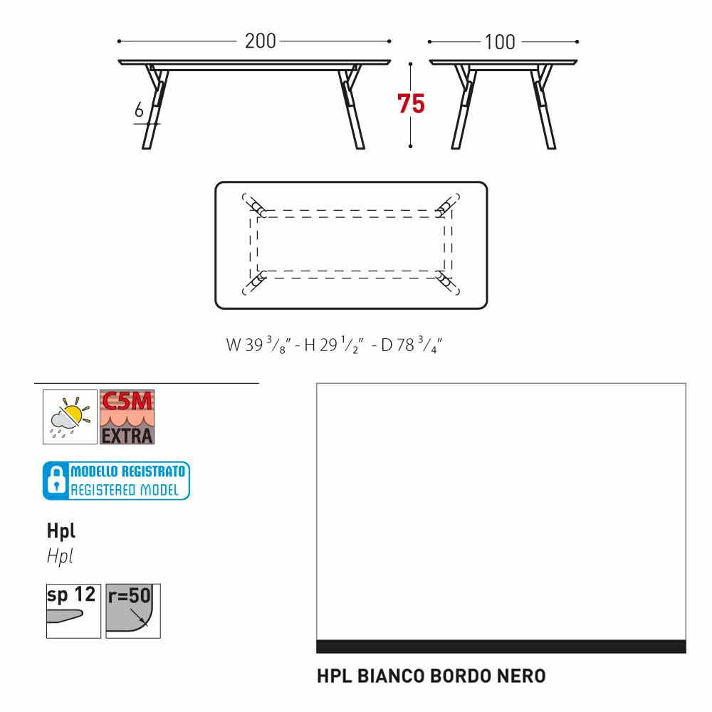 HPL Charaktereigenschaften: HPL heißt High Pressure Laminate. Diese Laminate bestehen aus mehreren Schichten Papier 70% mit einer 30% igen Harz Beschichtung, die unter hohem Druck zusammengefügt wurden. HPL-Platte (auf Basis thermohärtender Harze, homogen verstärkt mit Holzfasern, unter hohem Druck und Temperatur verpresst, der Pressvorgang dauert ca. 40 - 45 min). Das Ergebnis ist eine kompakte feste Tischplatte resistenter als je zuvor, die sowohl im Innenbereich, im Außenberich als auch im Marinebereich anewendet werden kann.