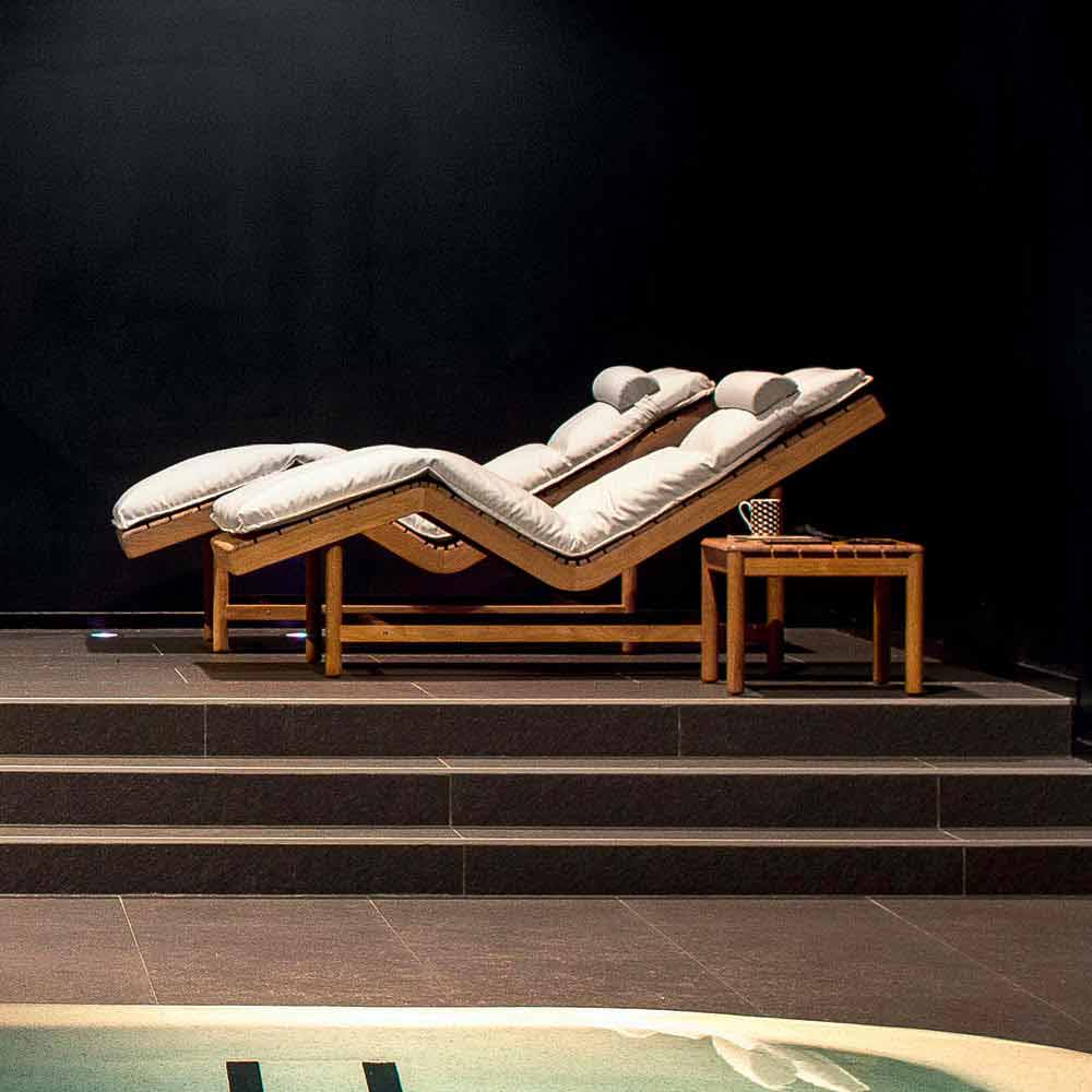Moderne Teak Sonnenliege für Indoor und Outdoor Varaschin Barcode