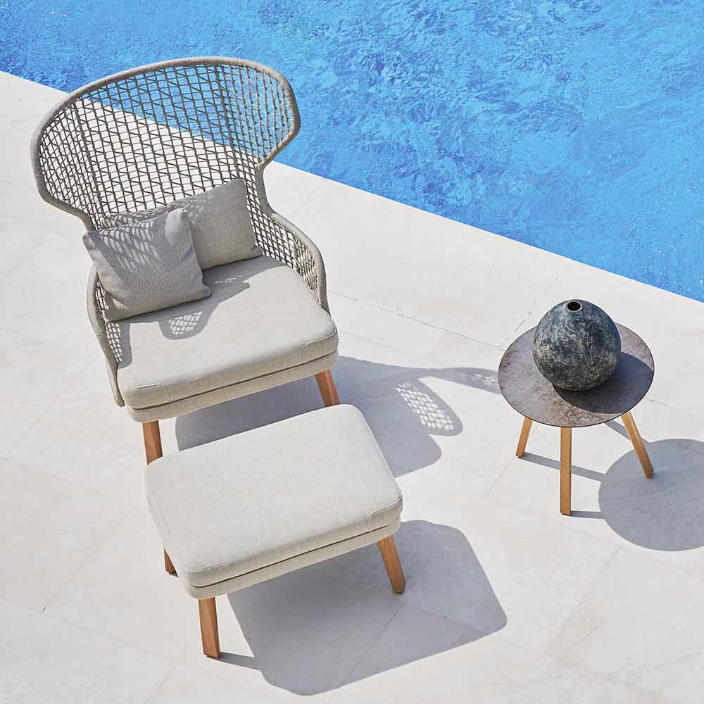 Varaschin Emma Outdoor-Fußstütze aus gepolstertem Stoff und Irokoholz