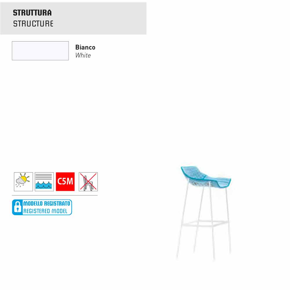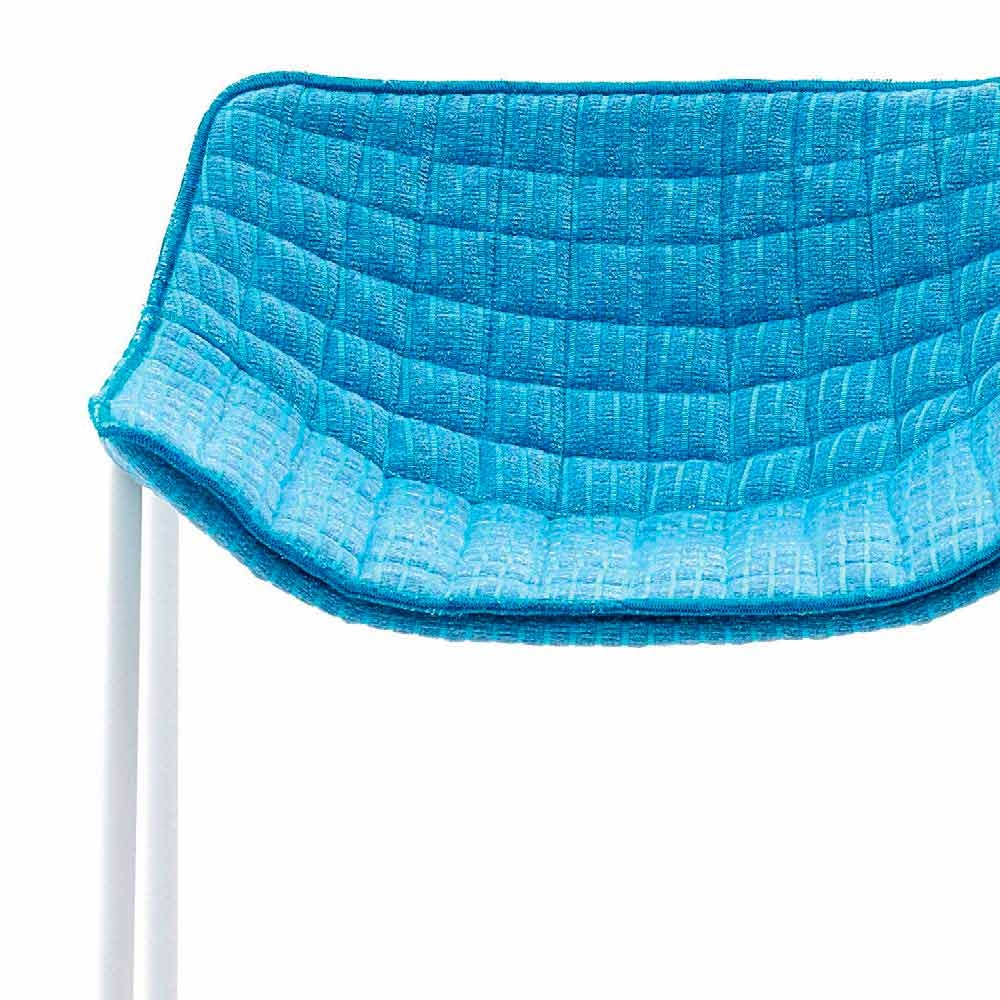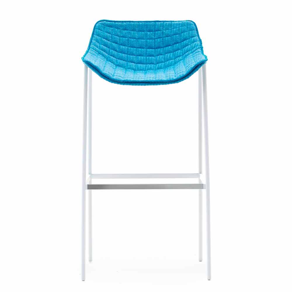 Summer Set ist ein Gartenhocker mit einer tragender Struktur aus pulverbeschichtetem Stahl in weiss lackiert und einer Sitzfläche aus Stoff gepolstert.