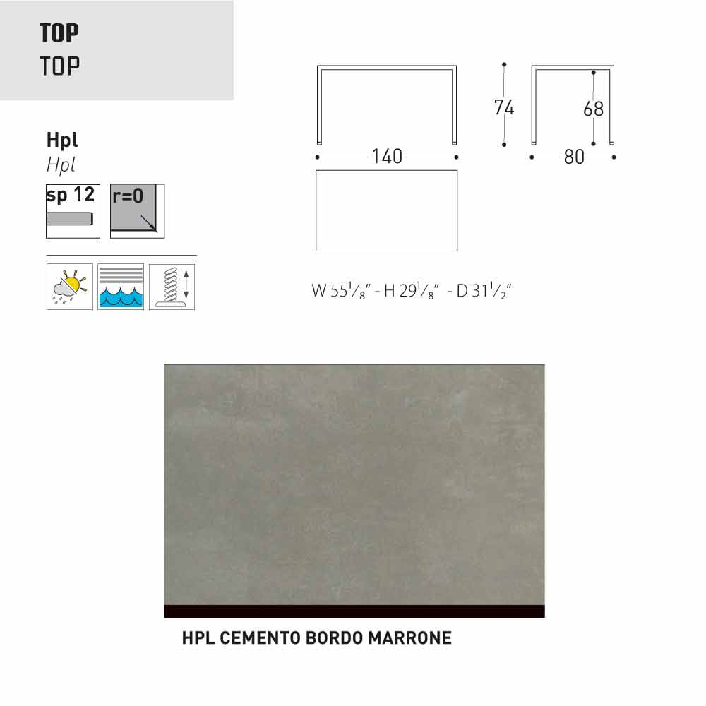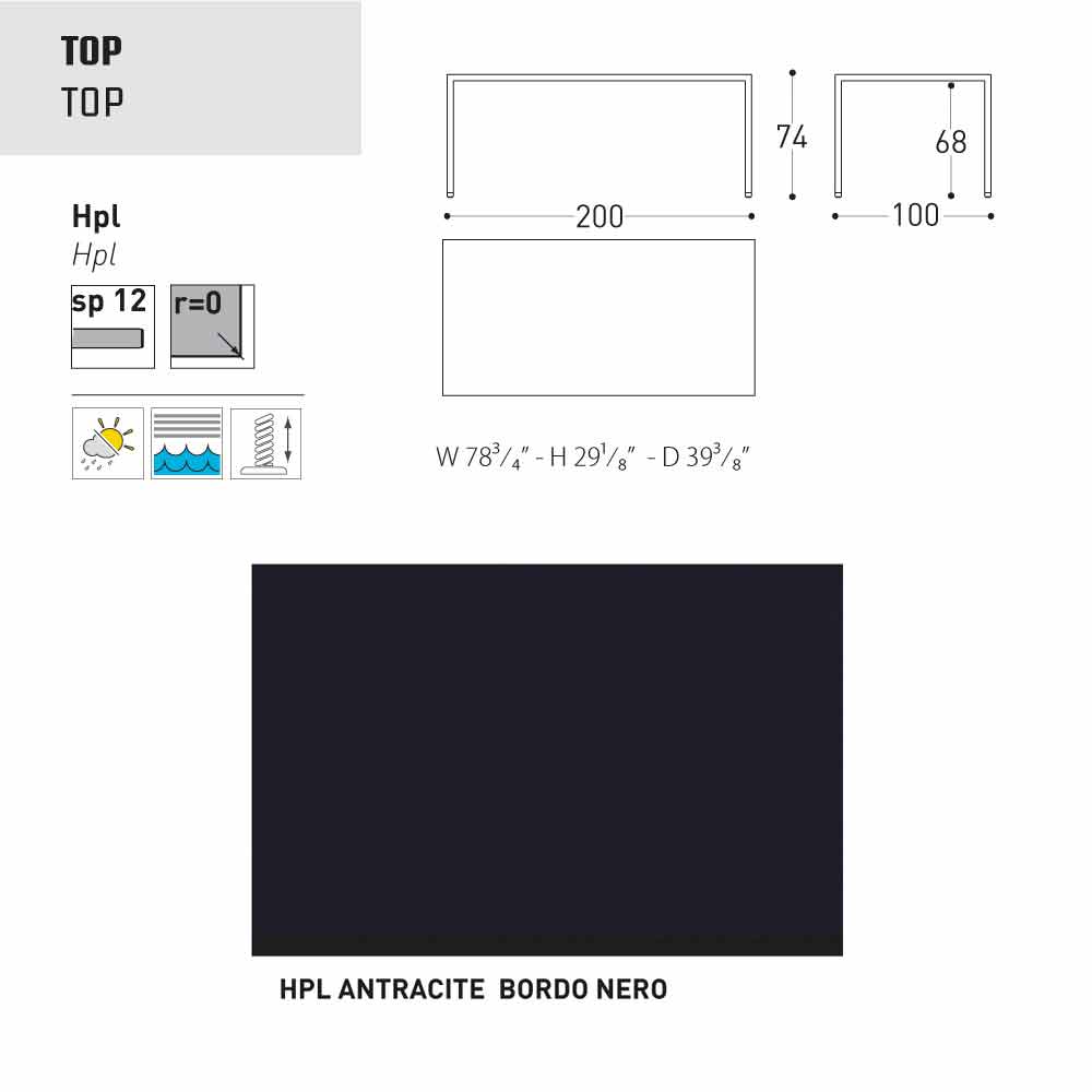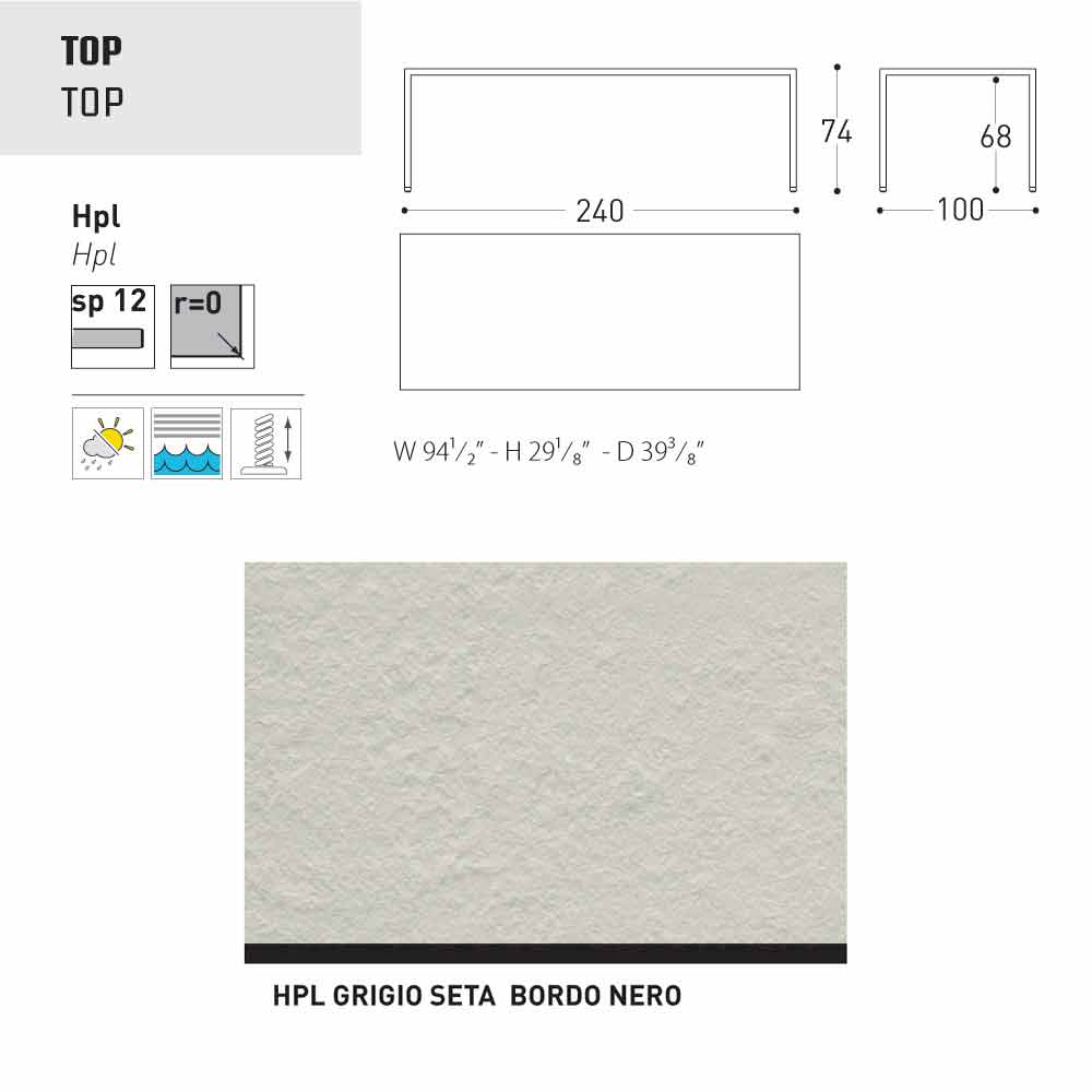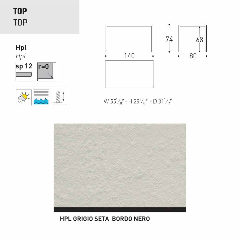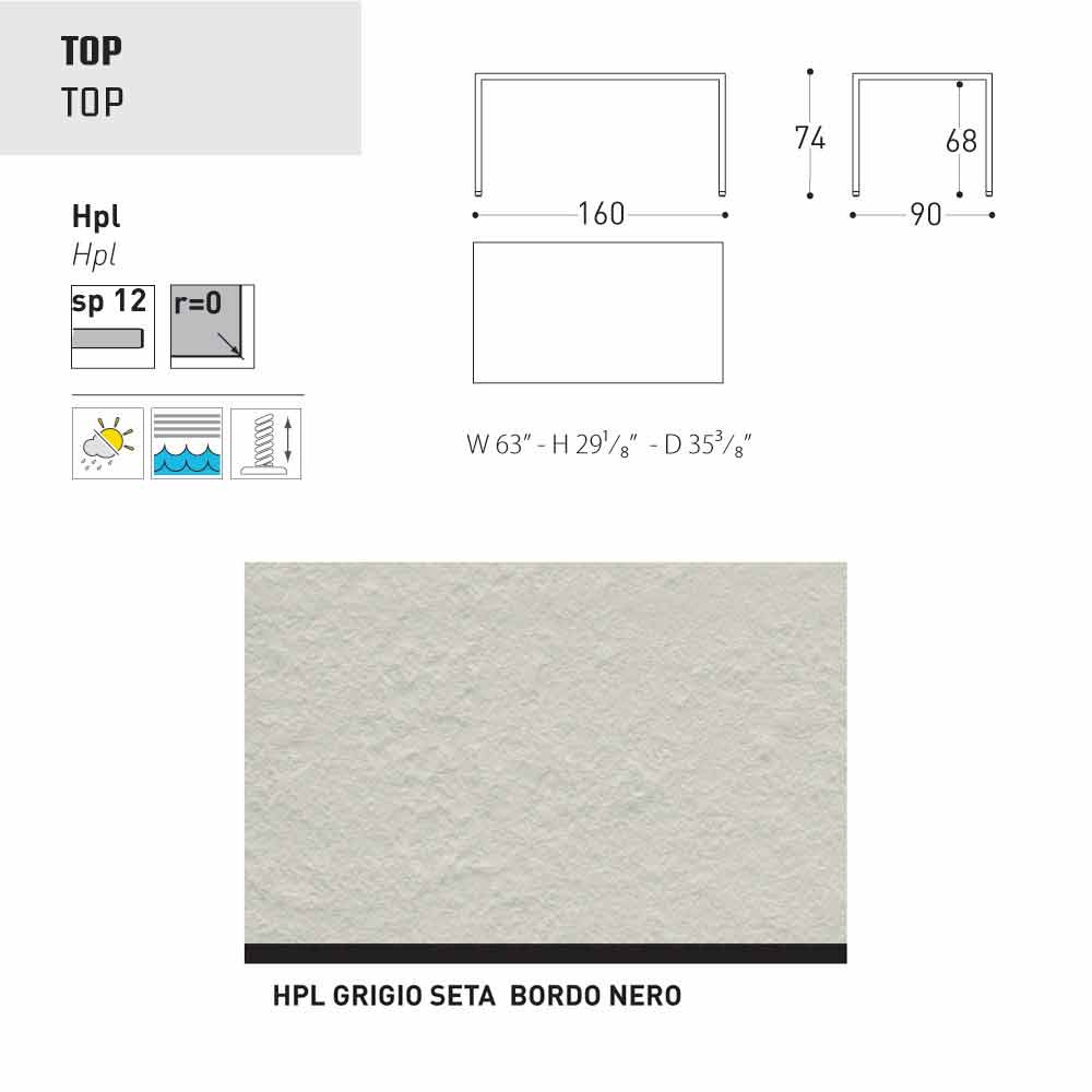 HPL heißt High Pressure Laminate. Diese Laminate bestehen aus mehreren Schichten Papier 70% mit einer 30% igen Harz Beschichtung, die unter hohem Druck zusammengefügt wurden. HPL-Platte (auf Basis thermohärtender Harze, homogen verstärkt mit Holzfasern, unter hohem Druck und Temperatur verpresst, der Pressvorgang dauert ca. 40 - 45 min). Das Ergebnis ist eine kompakte feste Tischplatte resistenter als je zuvor, die sowohl im Innenbereich, im Außenberich als auch im Marinebereich anewendet werden kann.