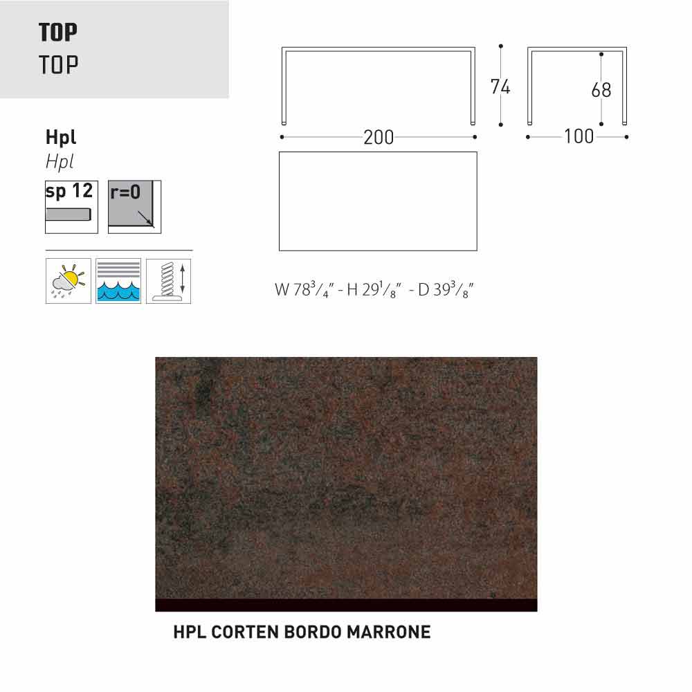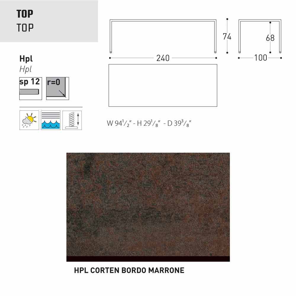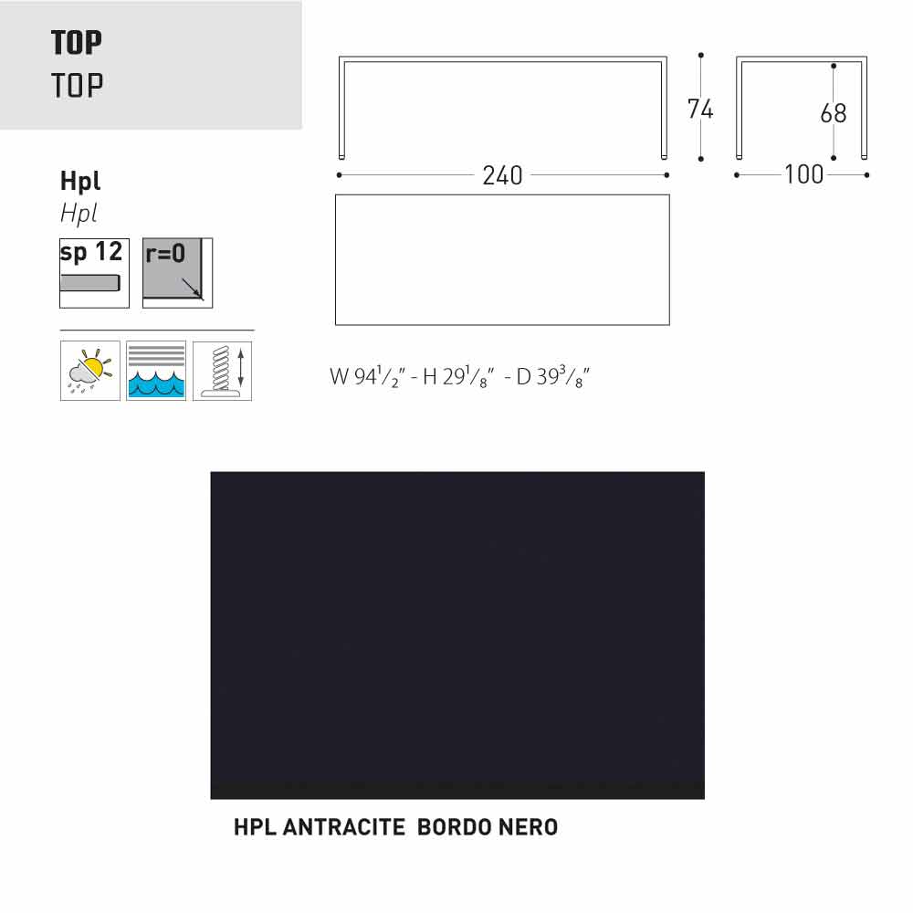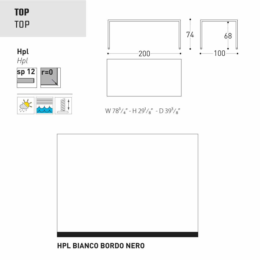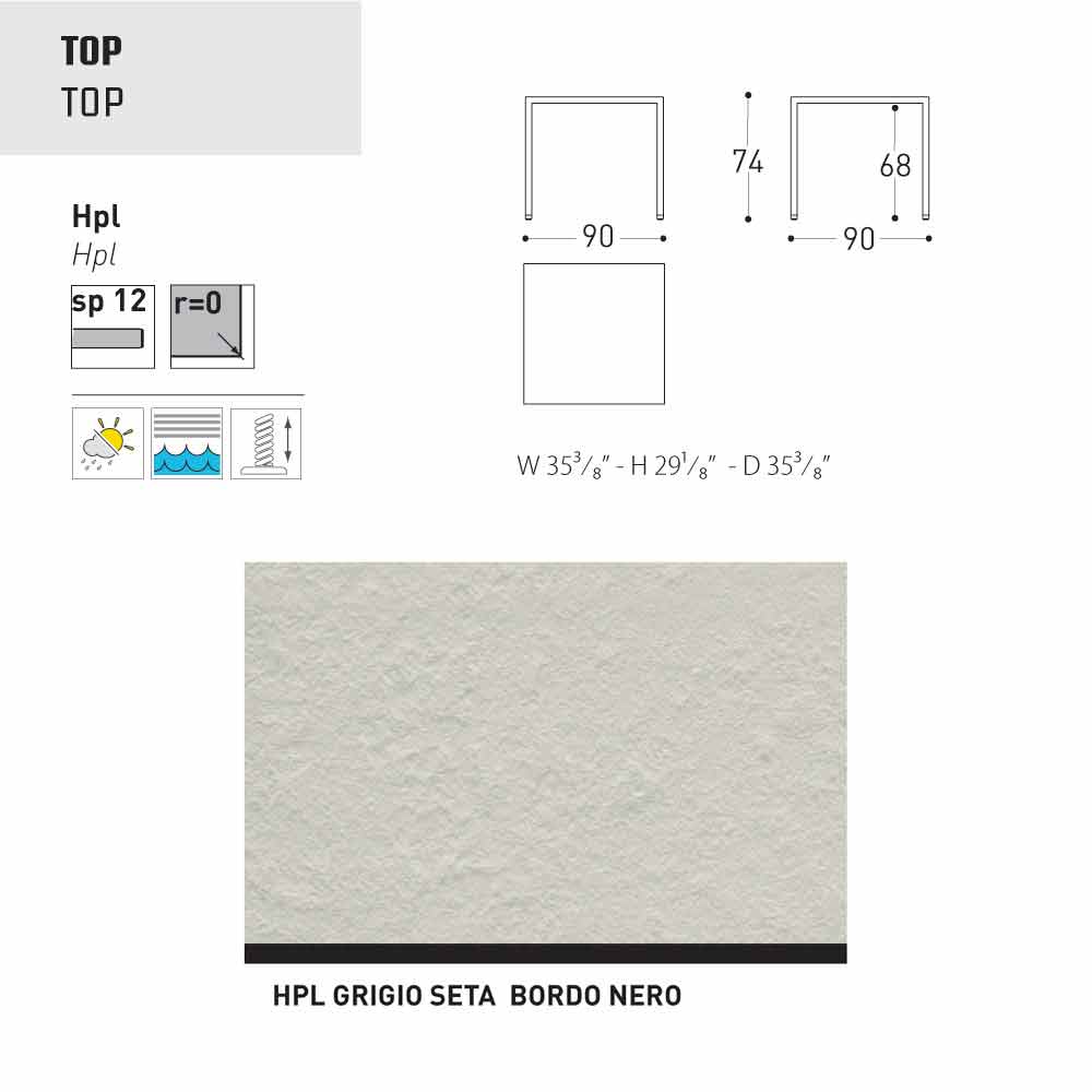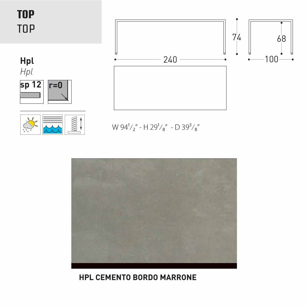 HPL heißt High Pressure Laminate. Diese Laminate bestehen aus mehreren Schichten Papier 70% mit einer 30% igen Harz Beschichtung, die unter hohem Druck zusammengefügt wurden. HPL-Platte (auf Basis thermohärtender Harze, homogen verstärkt mit Holzfasern, unter hohem Druck und Temperatur verpresst, der Pressvorgang dauert ca. 40 - 45 min). Das Ergebnis ist eine kompakte feste Tischplatte resistenter als je zuvor, die sowohl im Innenbereich, im Außenberich als auch im Marinebereich anewendet werden kann.
