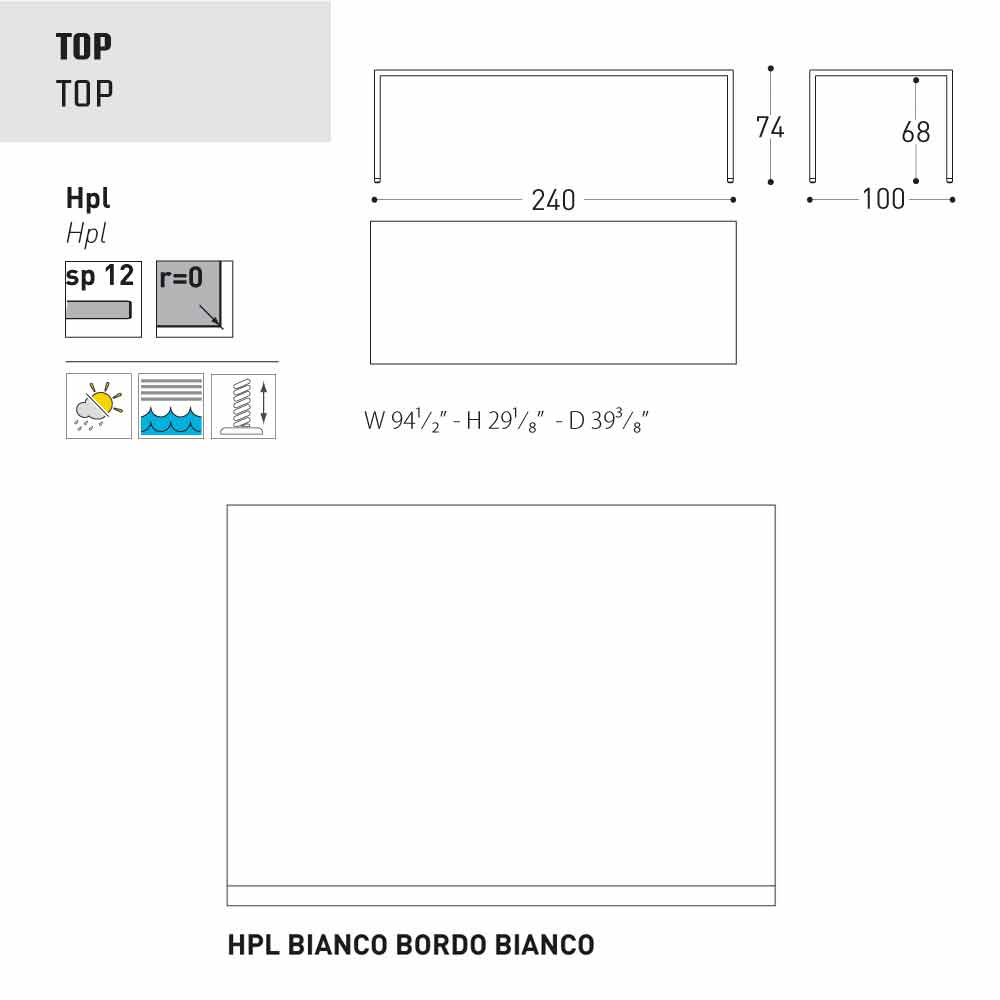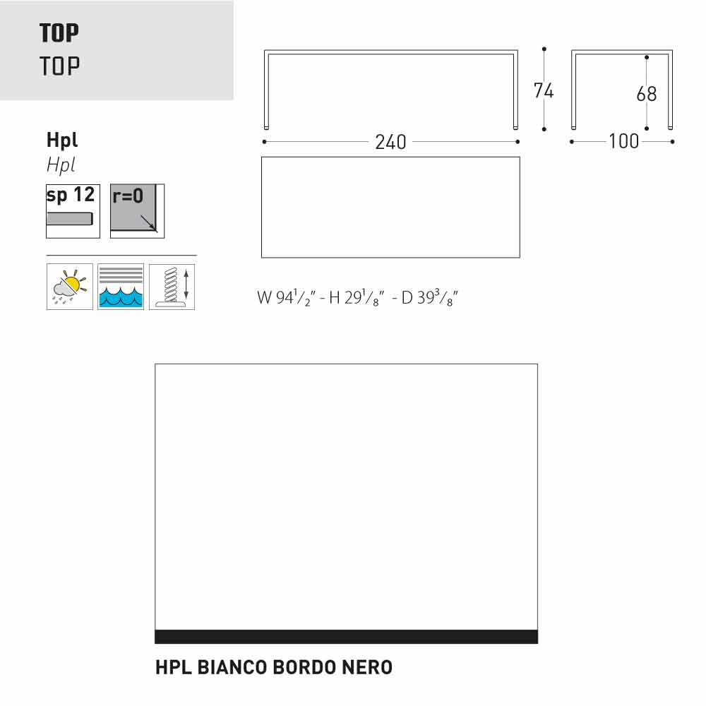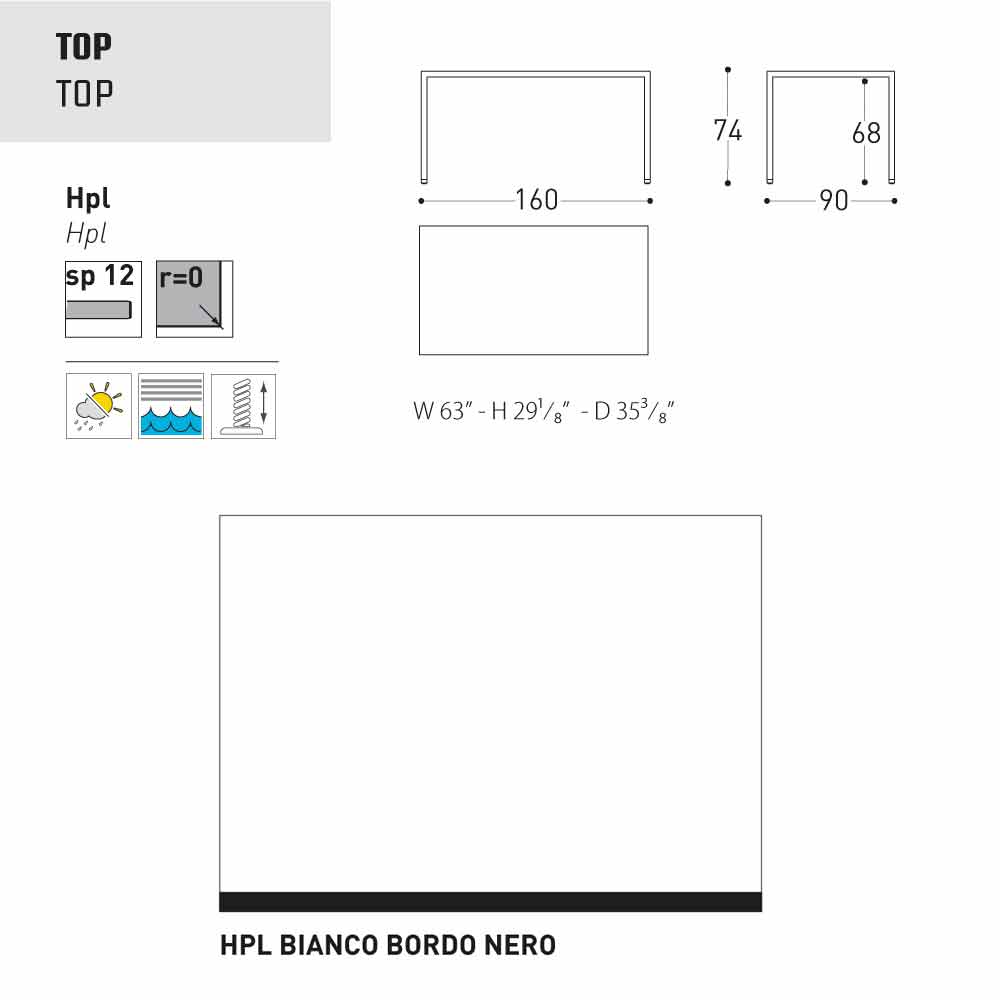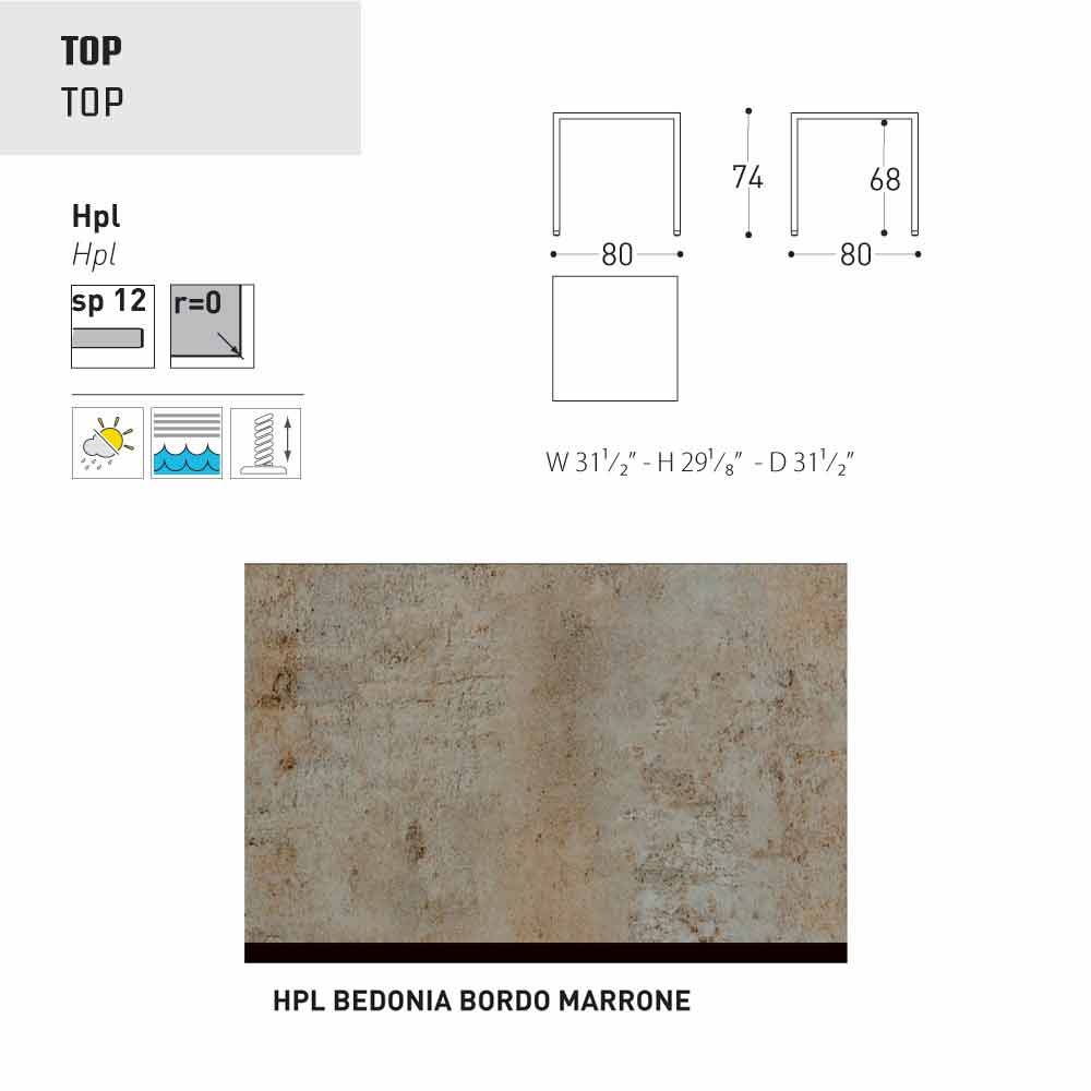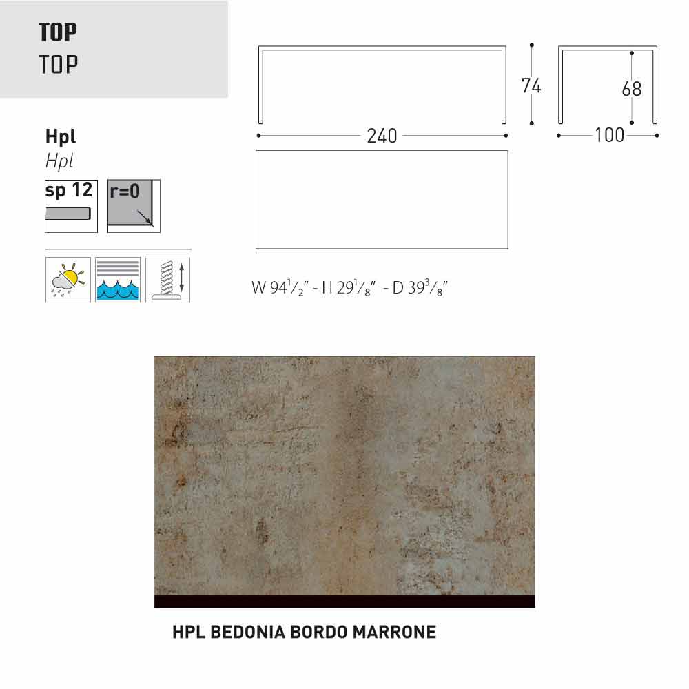 HPL heißt High Pressure Laminate. Diese Laminate bestehen aus mehreren Schichten Papier 70% mit einer 30% igen Harz Beschichtung, die unter hohem Druck zusammengefügt wurden. HPL-Platte (auf Basis thermohärtender Harze, homogen verstärkt mit Holzfasern, unter hohem Druck und Temperatur verpresst, der Pressvorgang dauert ca. 40 - 45 min). Das Ergebnis ist eine kompakte feste Tischplatte resistenter als je zuvor, die sowohl im Innenbereich, im Außenberich als auch im Marinebereich anewendet werden kann.