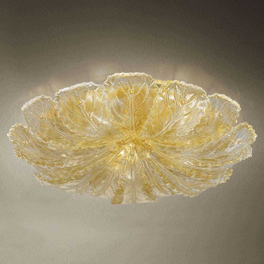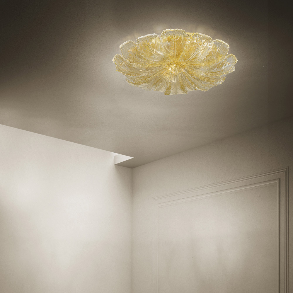 Handgefertigte Deckenlampe aus venezianischem Glas und Metall Made in Italy.